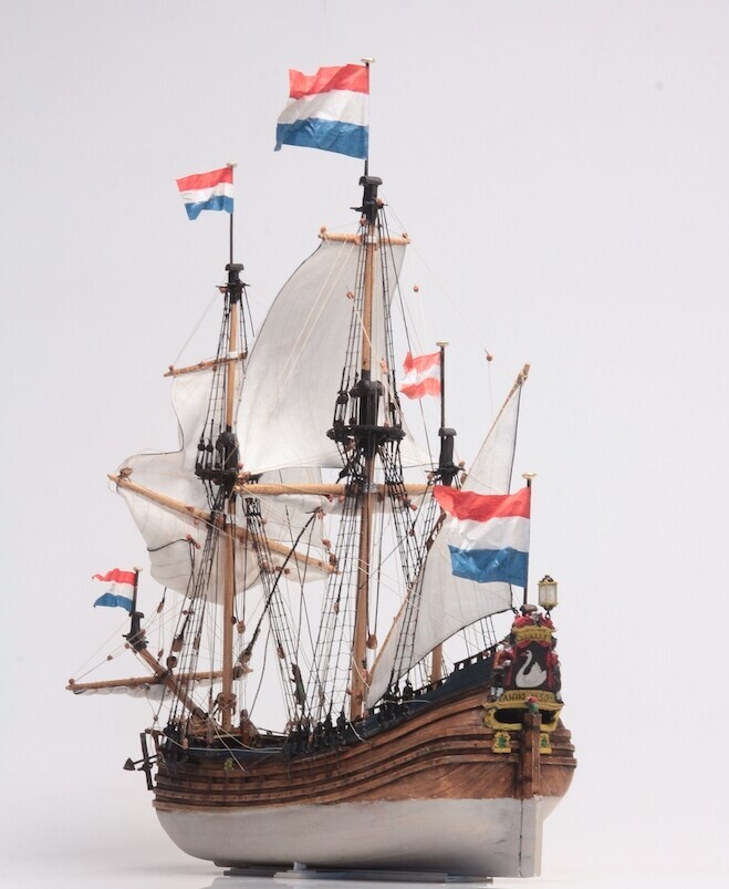 Replica van een kleine fluit; vooral varend met bulkgoederen (graan, ijzer, koper, etc.) op de Scandinavische landen; 90 voet