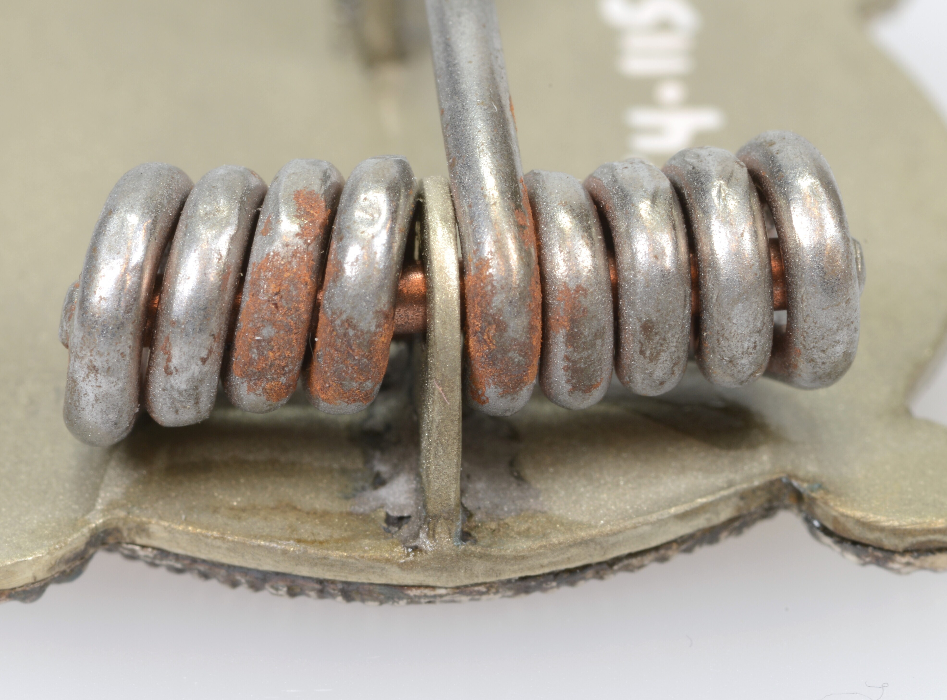 Schijffibula; verzilverde bronzen Germaanse schijffibula; de naald is afgebroken bij de spiraal; De naaldhouder is afgebroken en het oppervlak is versierd met meerdere concentrische ringen met parels van verschillende diameter rond een centrale ronding; aan vier zijden is een ronde uitstulping, versierd met inwaarts gerichte groeven (zie het vergelijkbare type exemplaar vnr 199A)