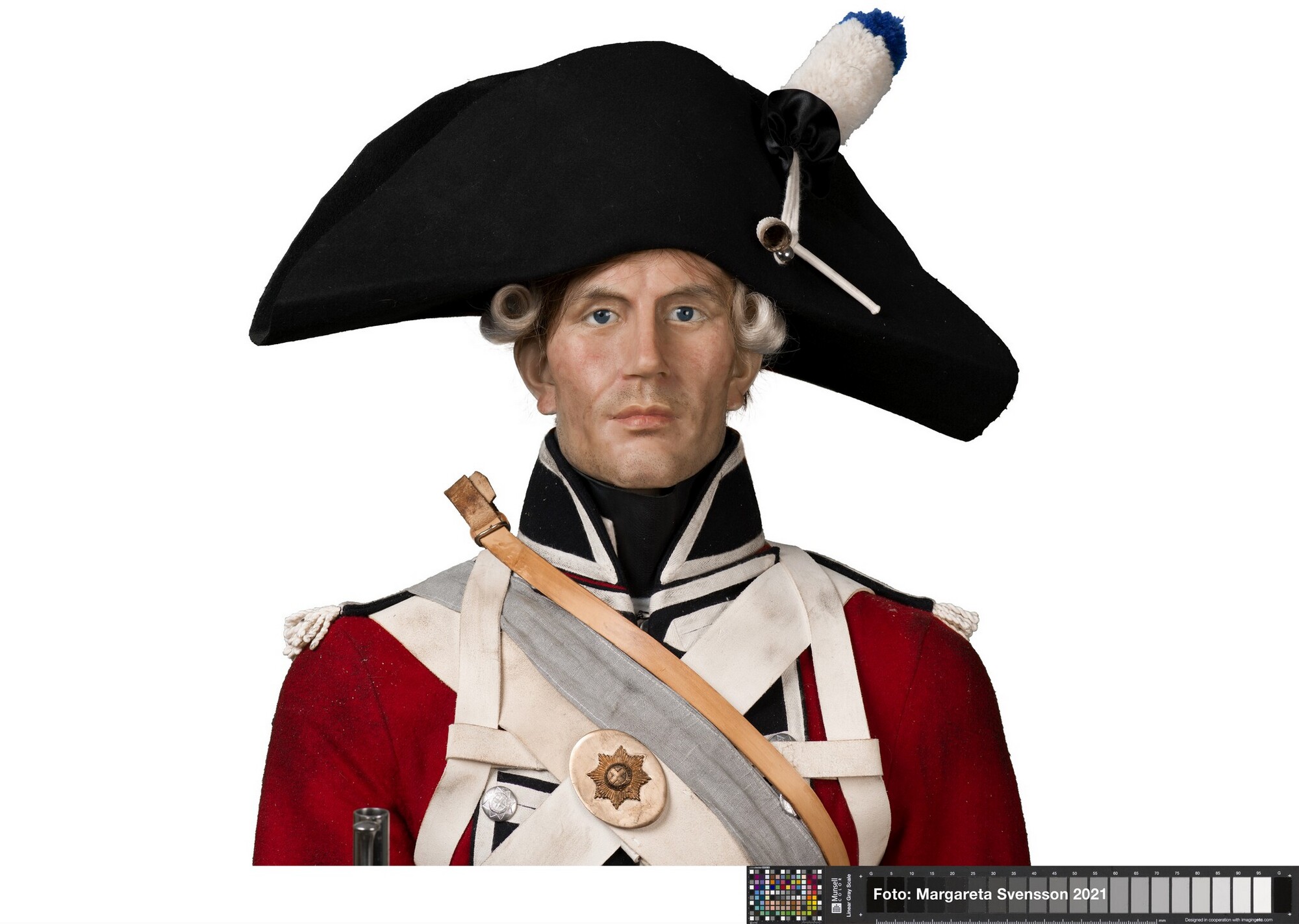 Reconstructie van een Britse soldaat uit het regiment Coldstream Guards rond 1799 op basis van afbeeldingen.