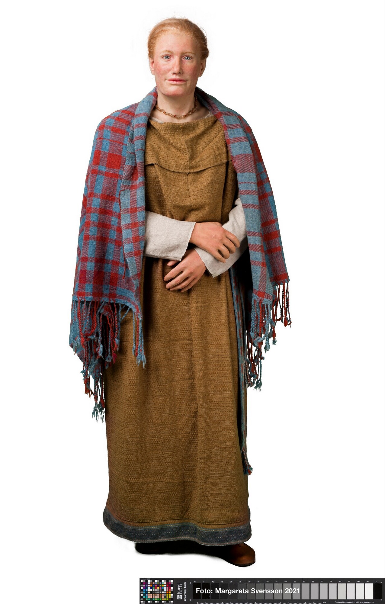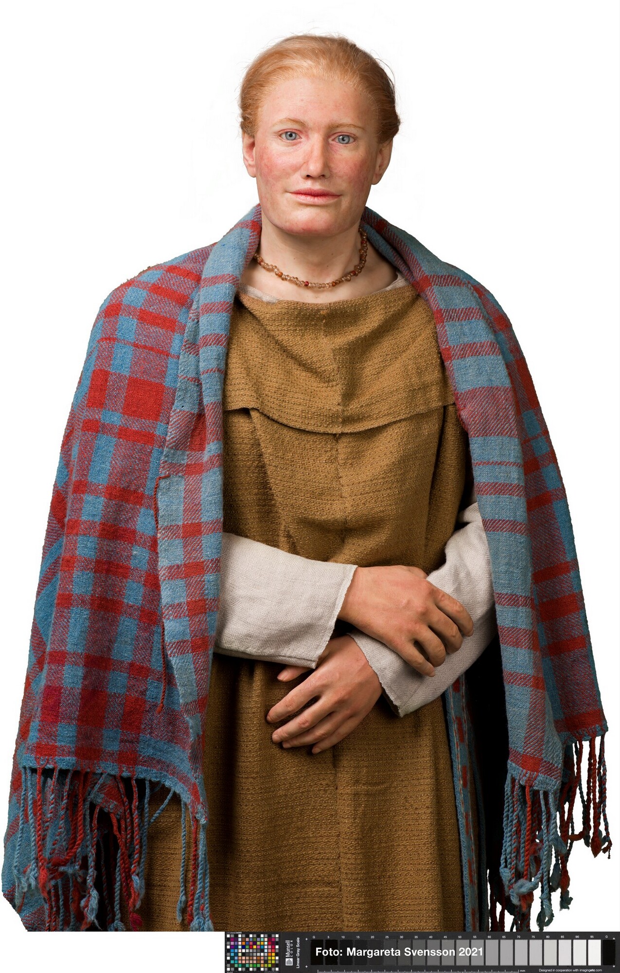 Reconstructie van een Germaanse vrouw, ca 25-30 jaar oud, op basis van het gevonden skelet.