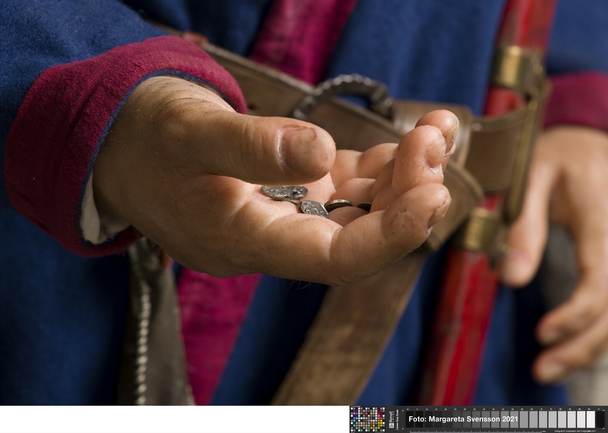 Reconstructie van een handelaar uit het begin van de achtste eeuw.