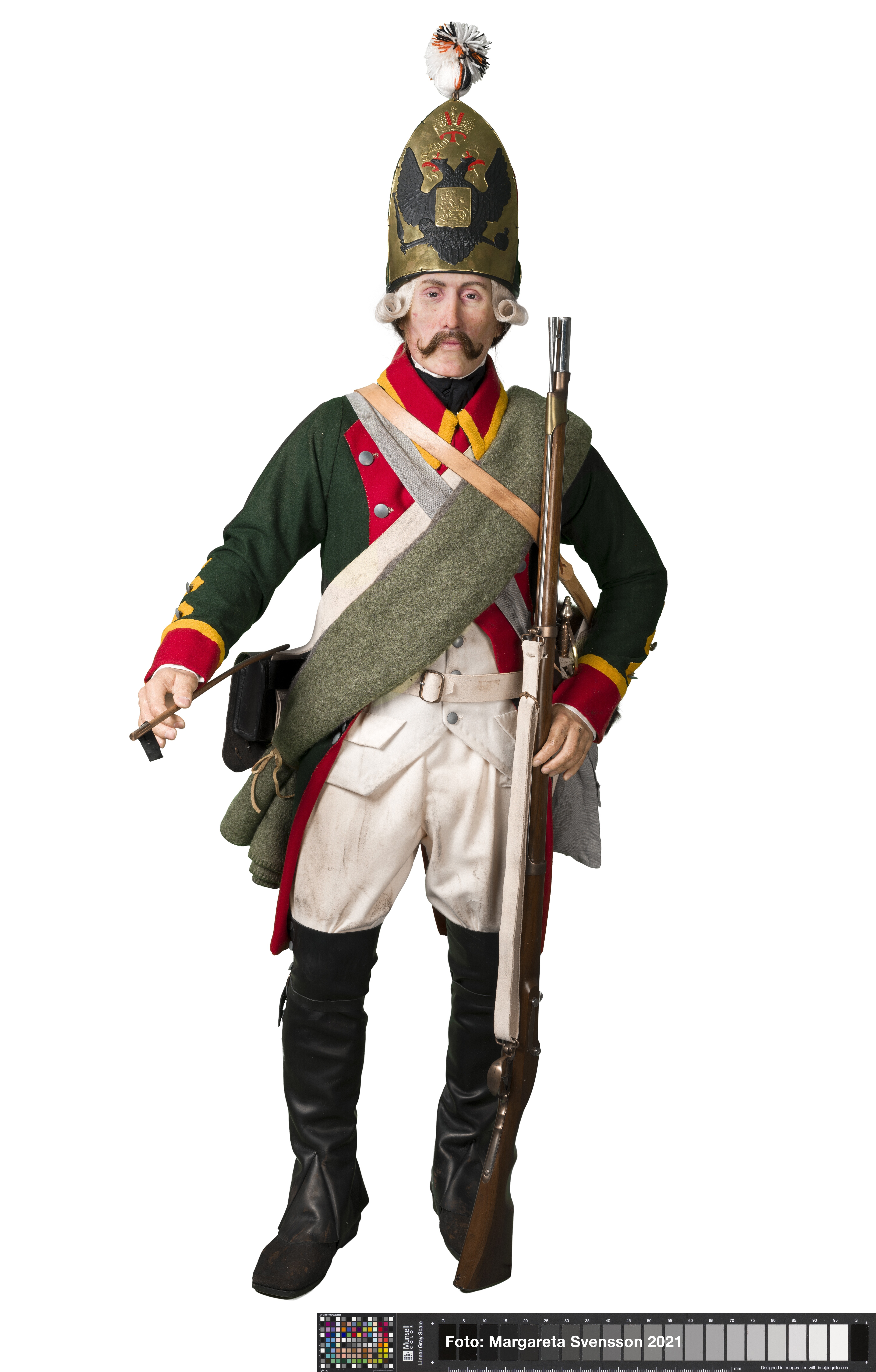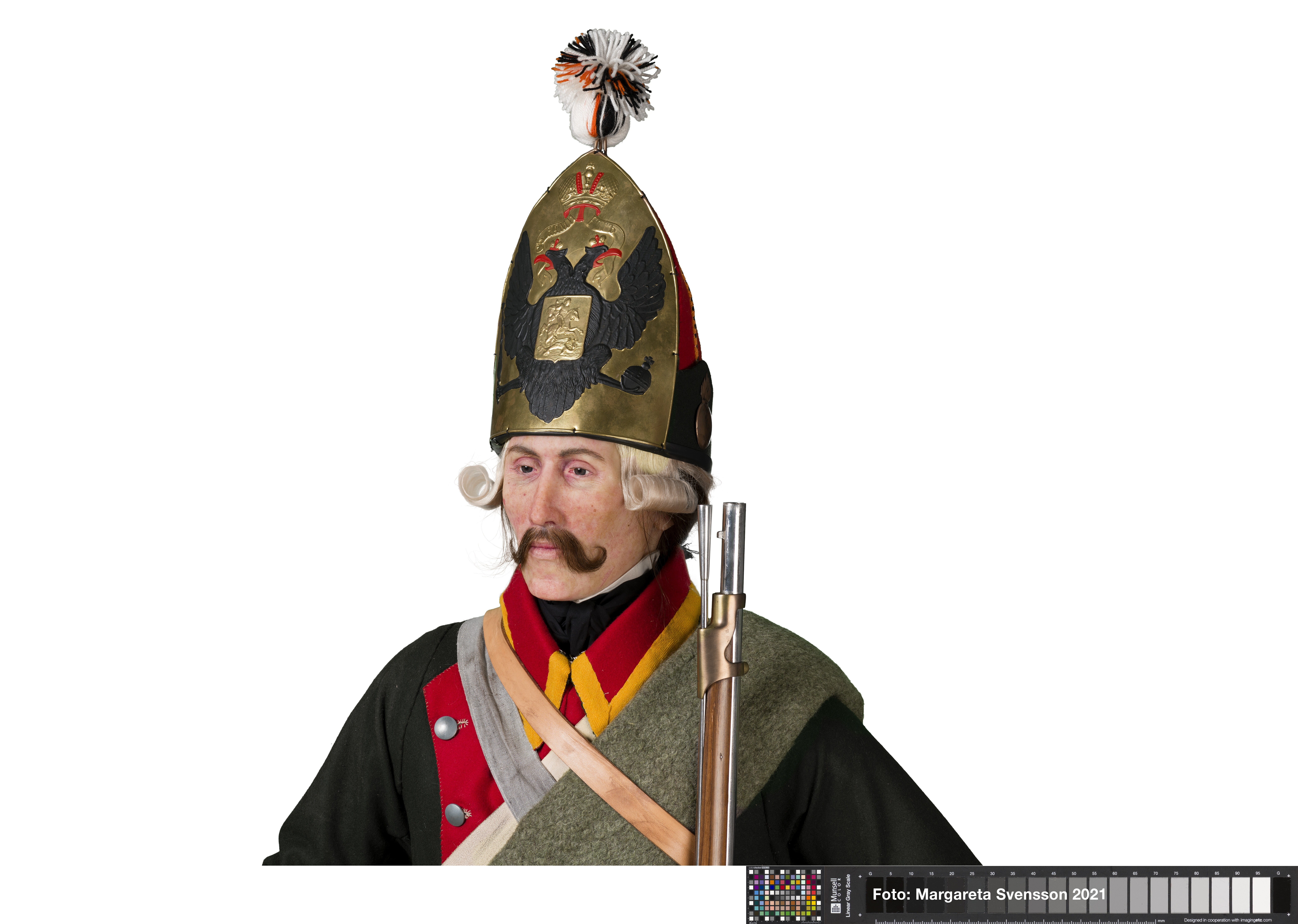 Reconstructie Russische grenadier op basis van de gevonden schedel