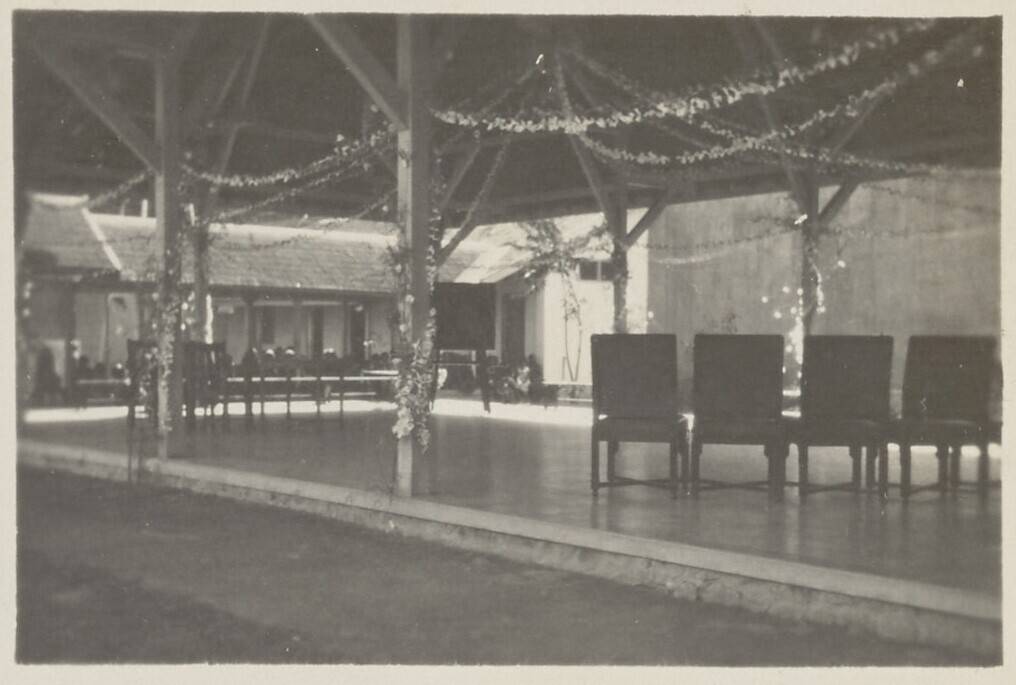 Toen Koestijah en Mej. Bosman de Pamardi Poetri school verlieten, de versierde speelloods op den feestmorgen