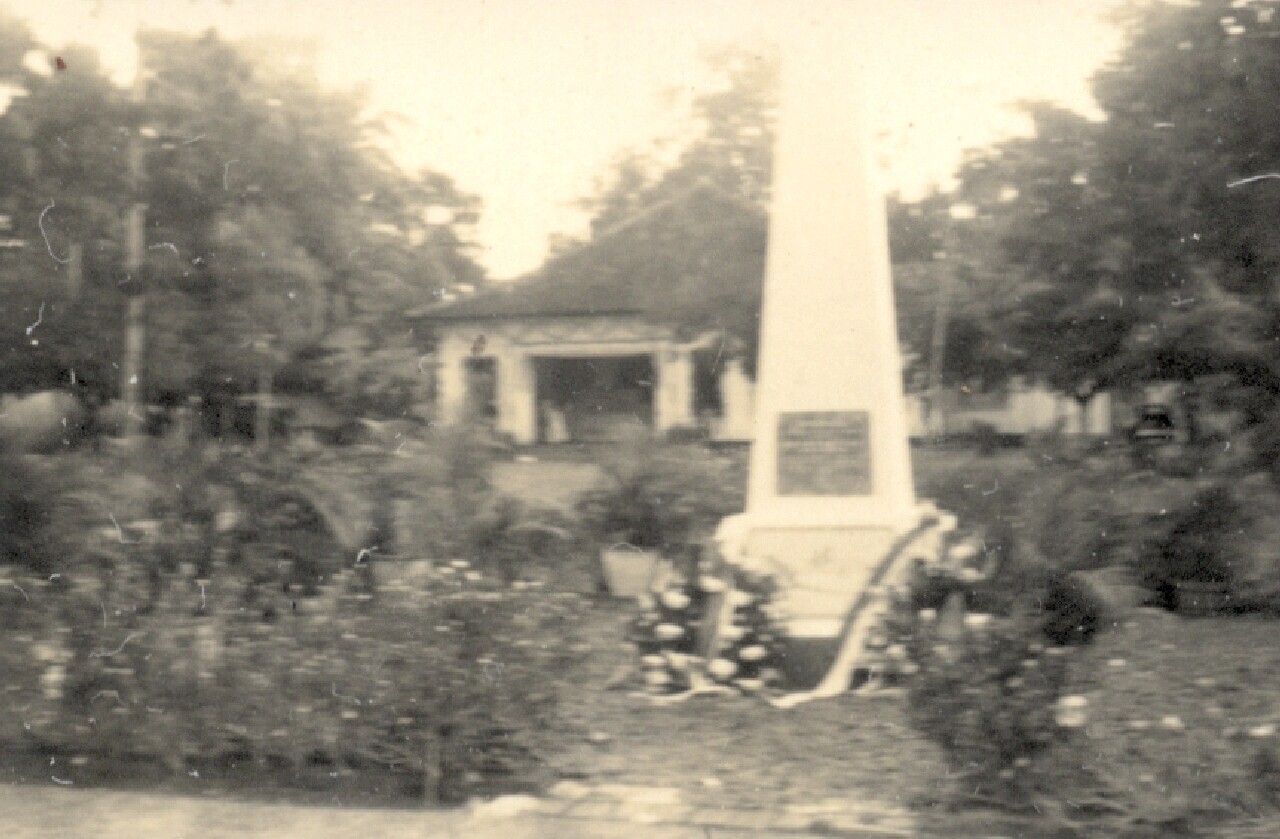 Kranslegging bij een monument met een plaquette over de Proklamasi voor het huis waar de Proklamatie werd uitgeroepen op 17 Augustus 1945
