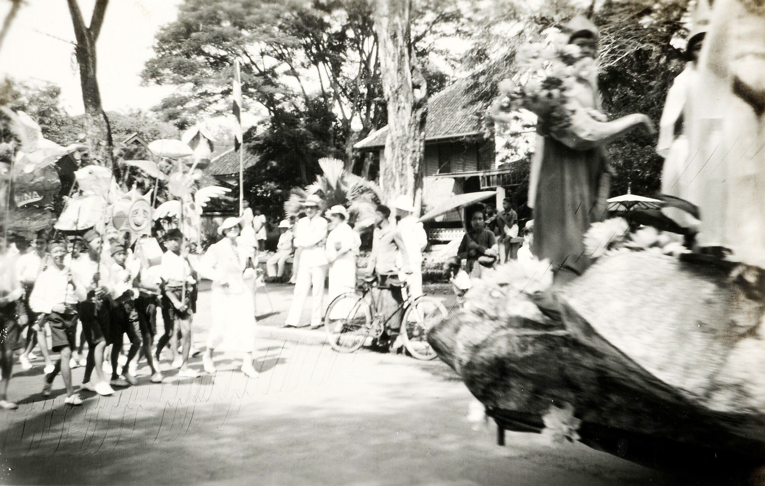 Optocht, onderdeel van de festiviteiten bij de Hollandsch-Chinese School, ter gelegenheid van de geboorte van Prinses Beatrix, 1938