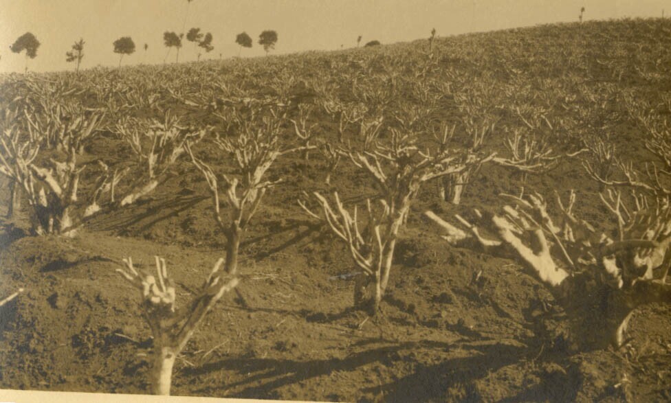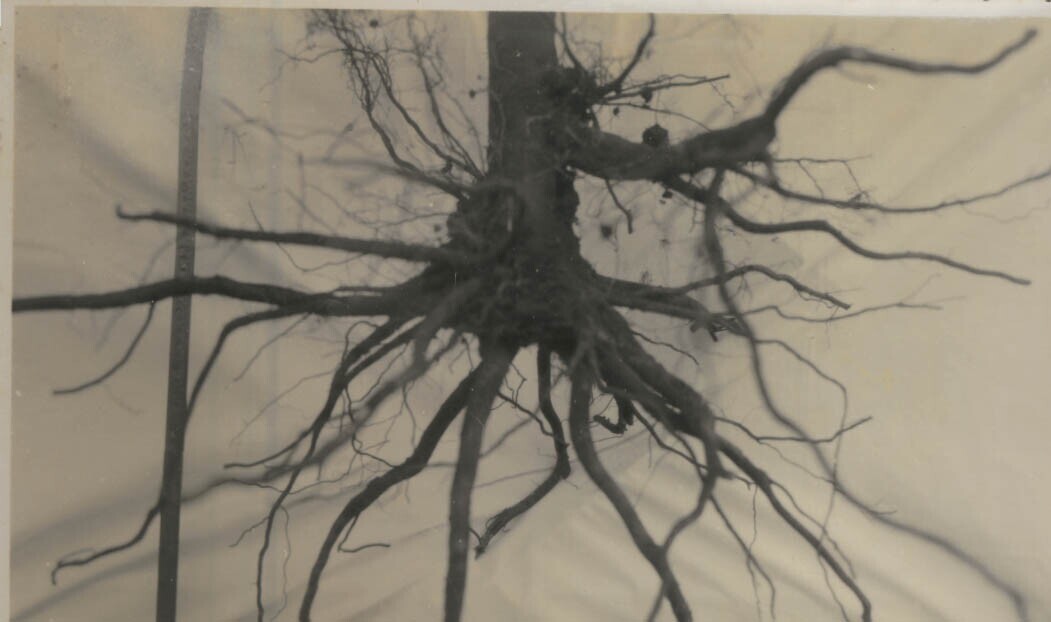 veld met stronken, plantenwortels