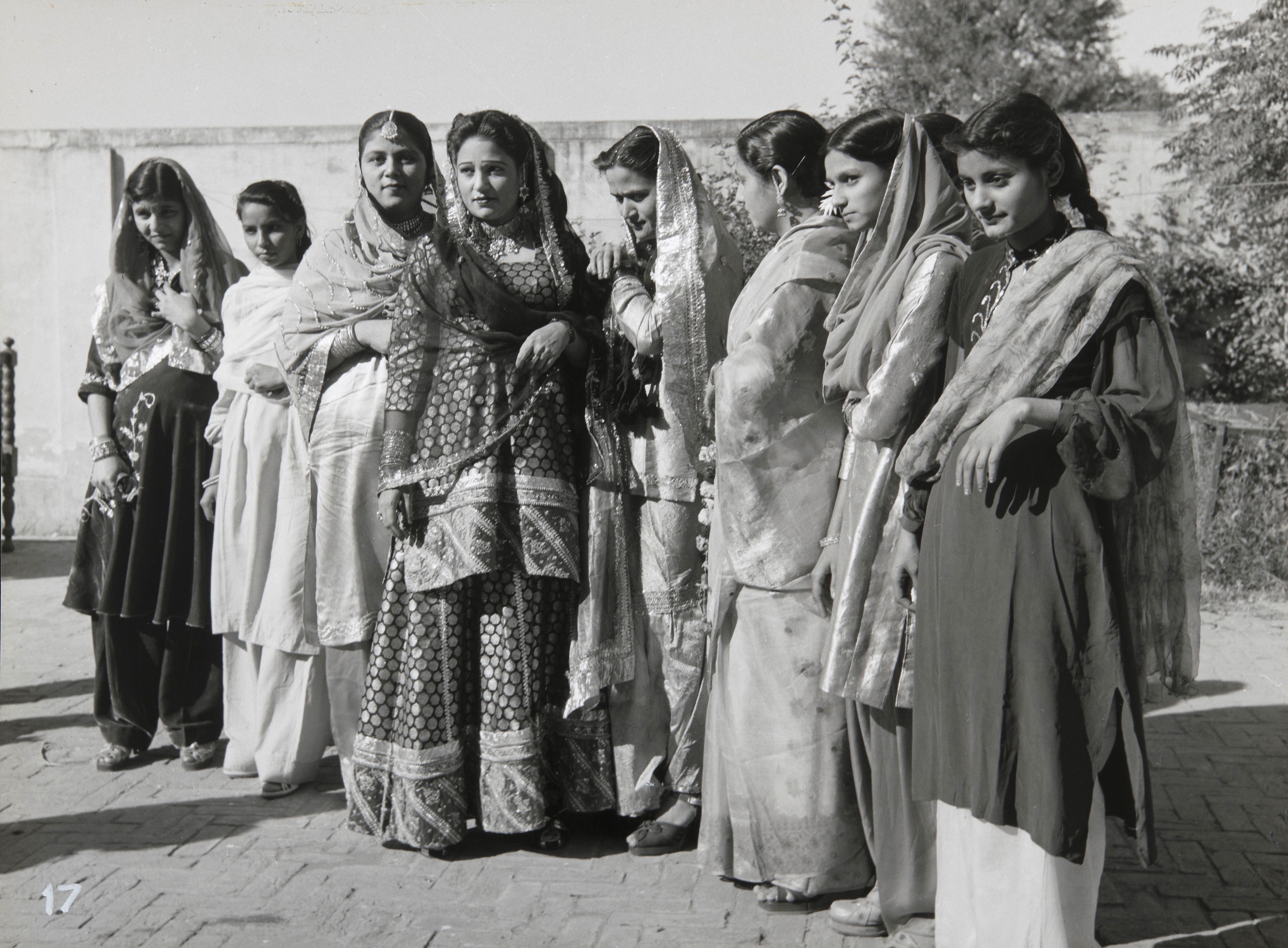 Groepsfoto van vrouwen in feestelijke kleding