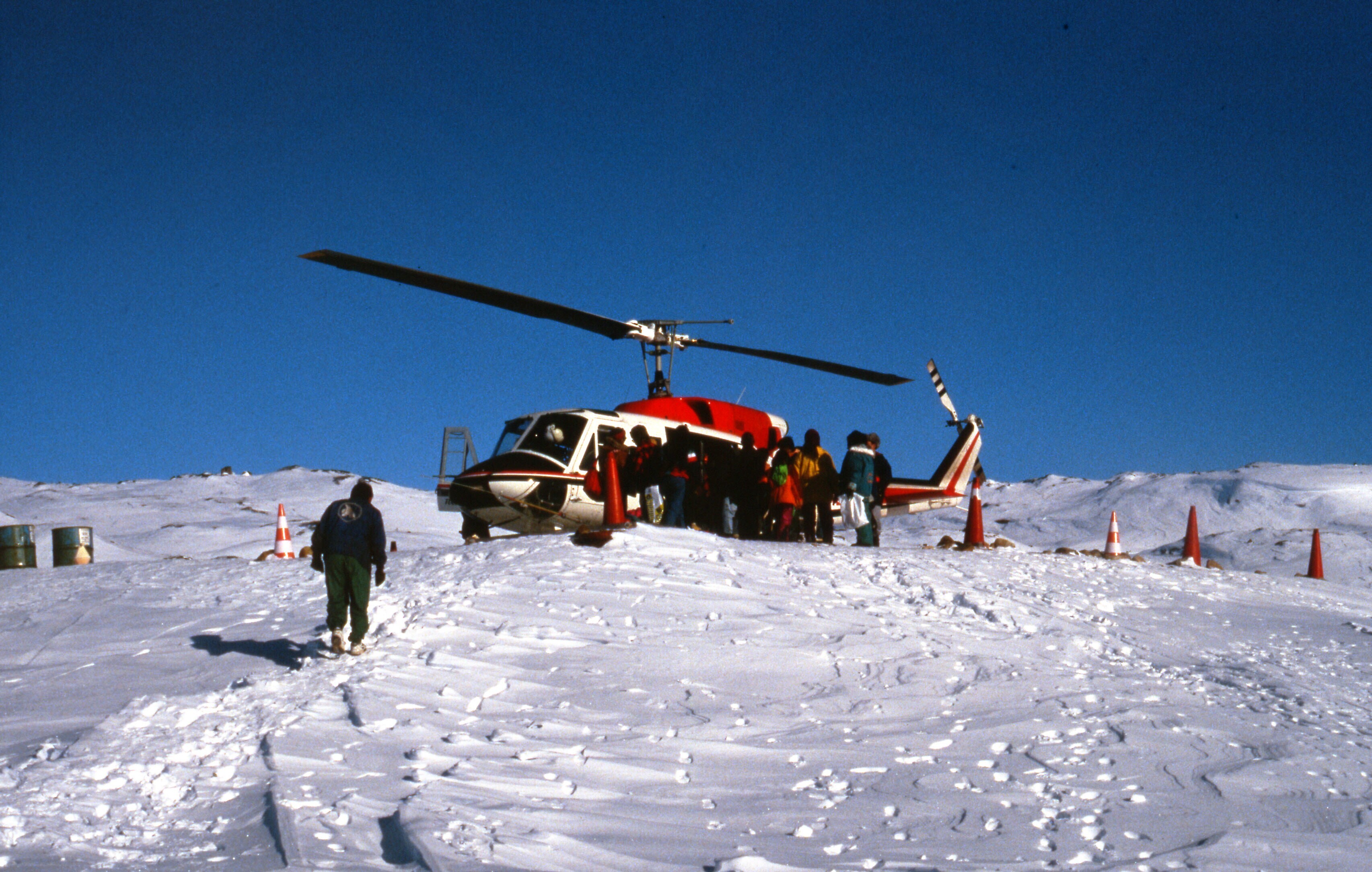 De helikopter, die in de winter het personenvervoer tussen de dorpen en steden regelt, gaat vertrekken vanuit Tiniteqilaaq naar Tasiilaq (Ammassalik), maart-april .