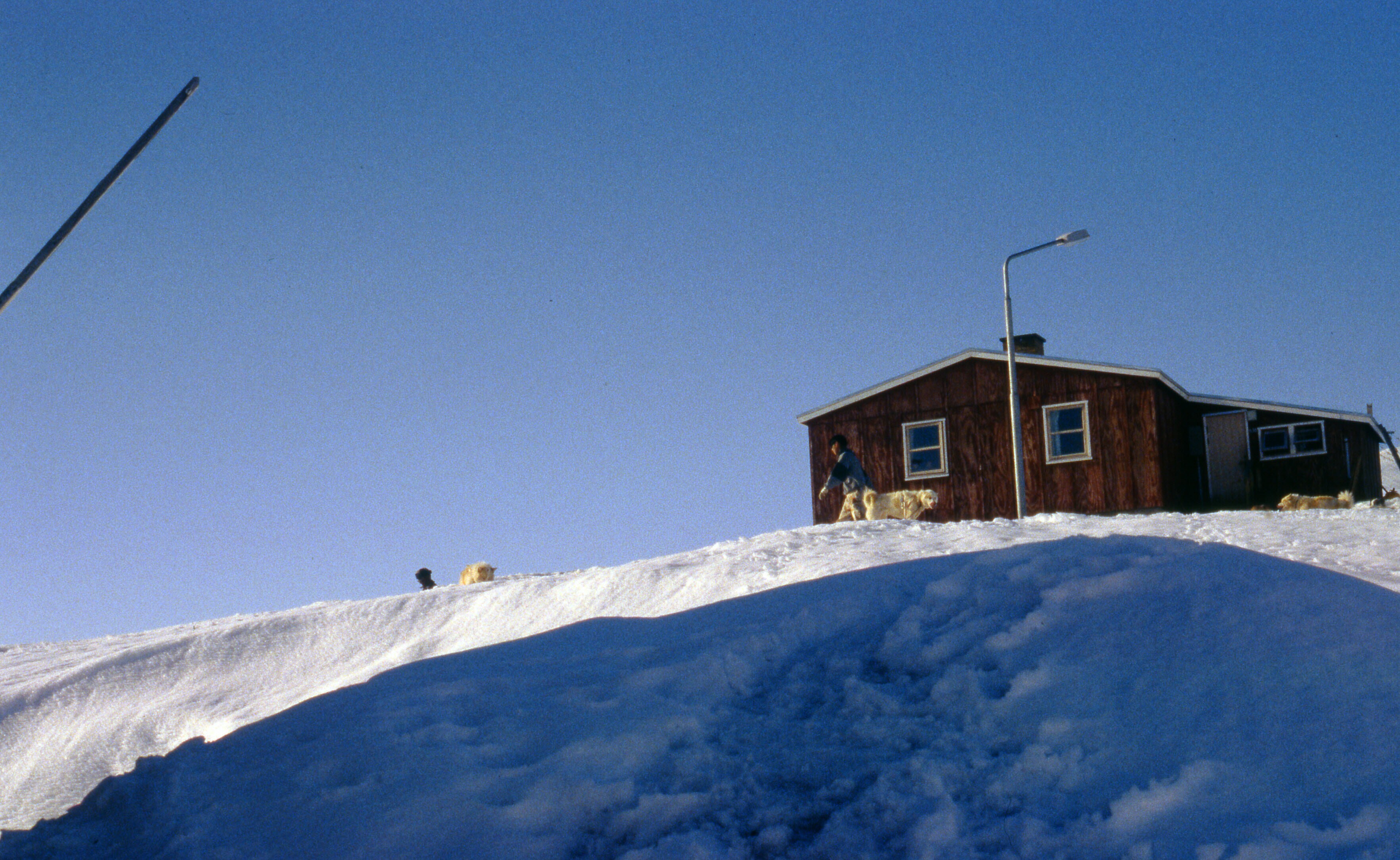 - Een hoog gelegen huis van Tiniteqilaaq, thans is het bewoond door Gerti en Thomasine. Tiniteqilaaq, maart-april