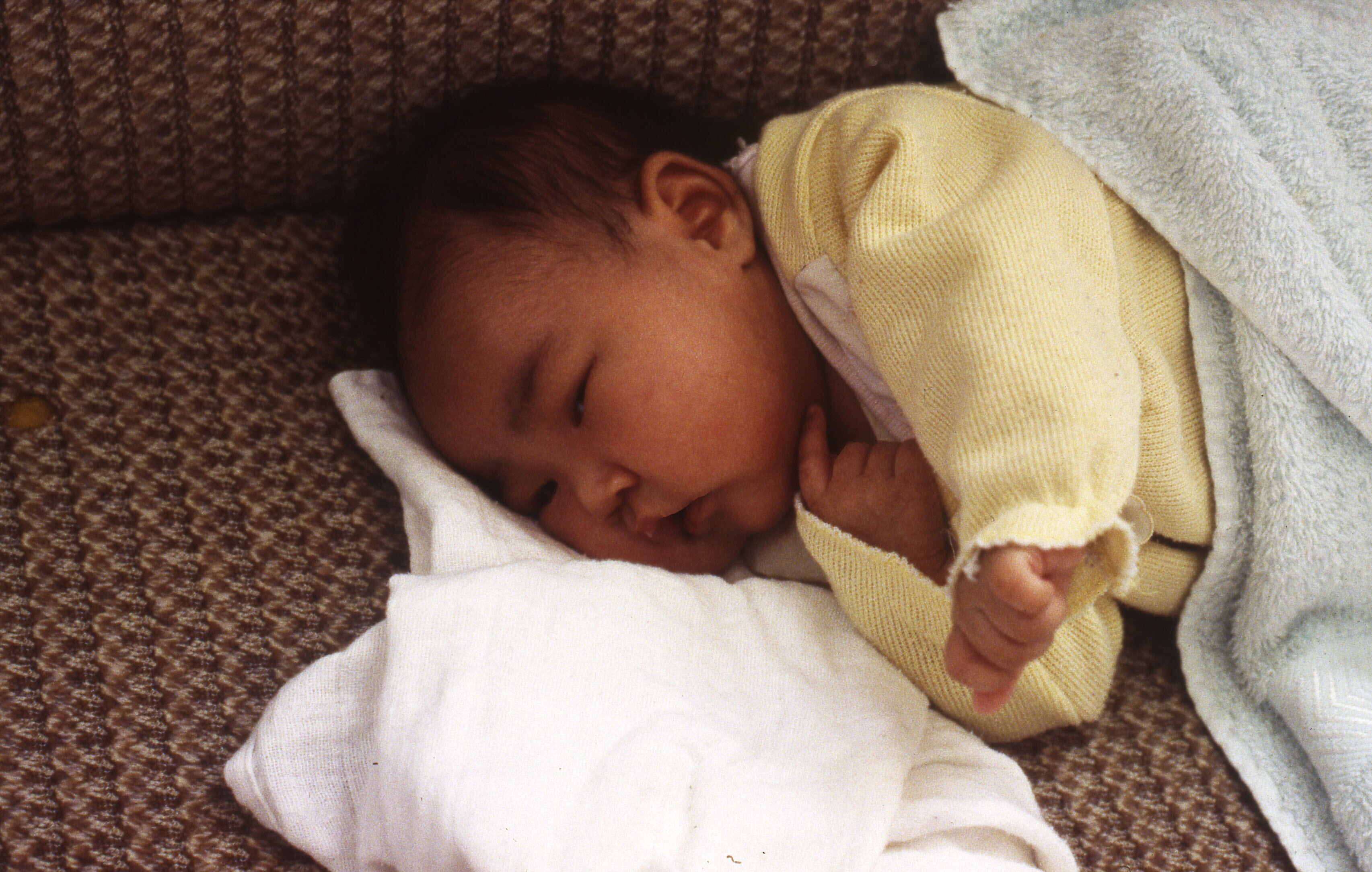 - Baby Anna Jonathansen ligt te slapen op de bank.Tiniteqilaaq, maart .