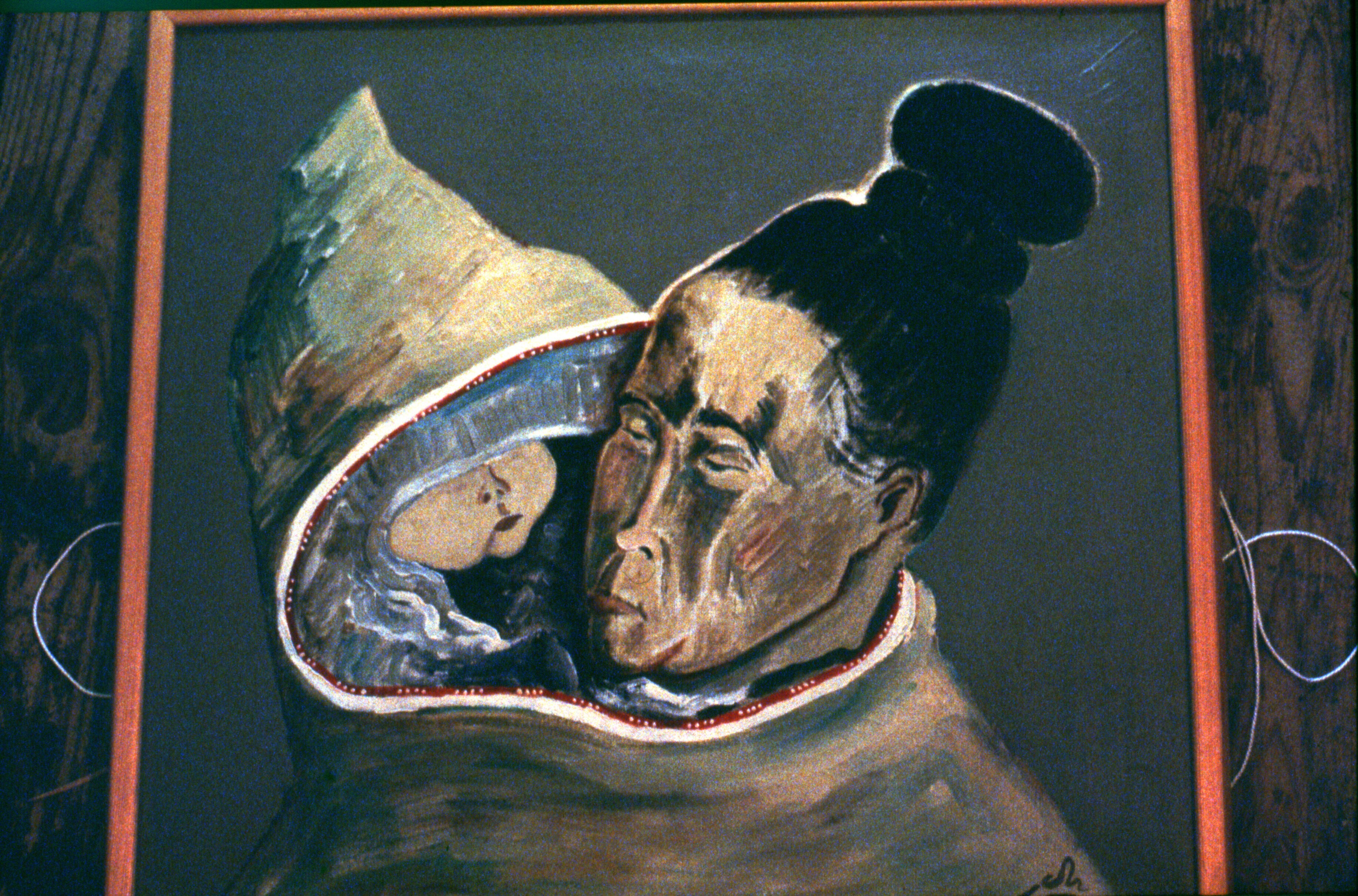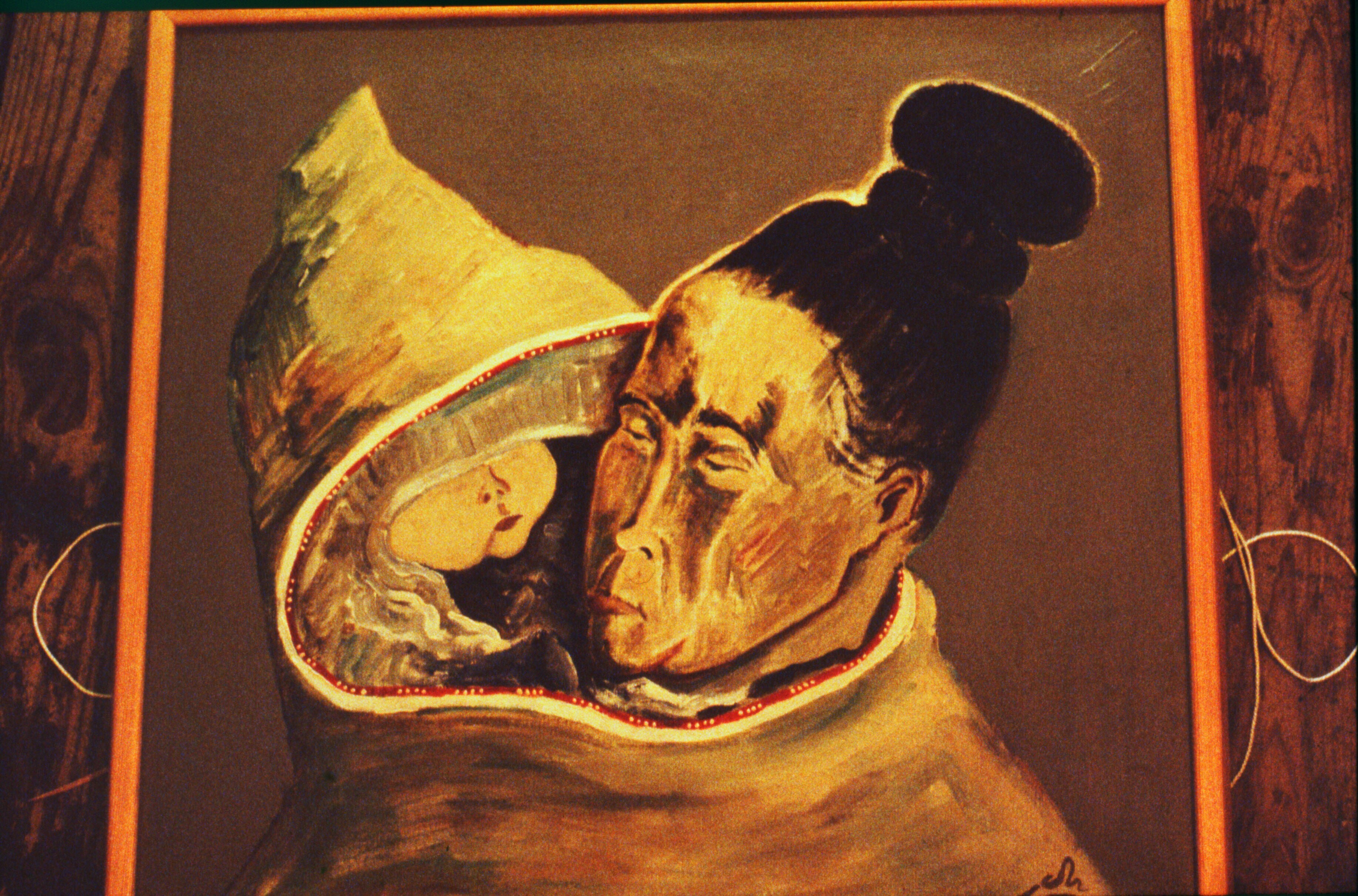 - Schilderij van Oost-Groenlandse moeder met kind in haar jas. Ammassalik Museum, april .