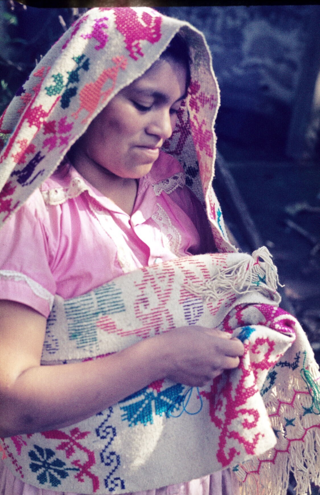 vrouw, bordurend