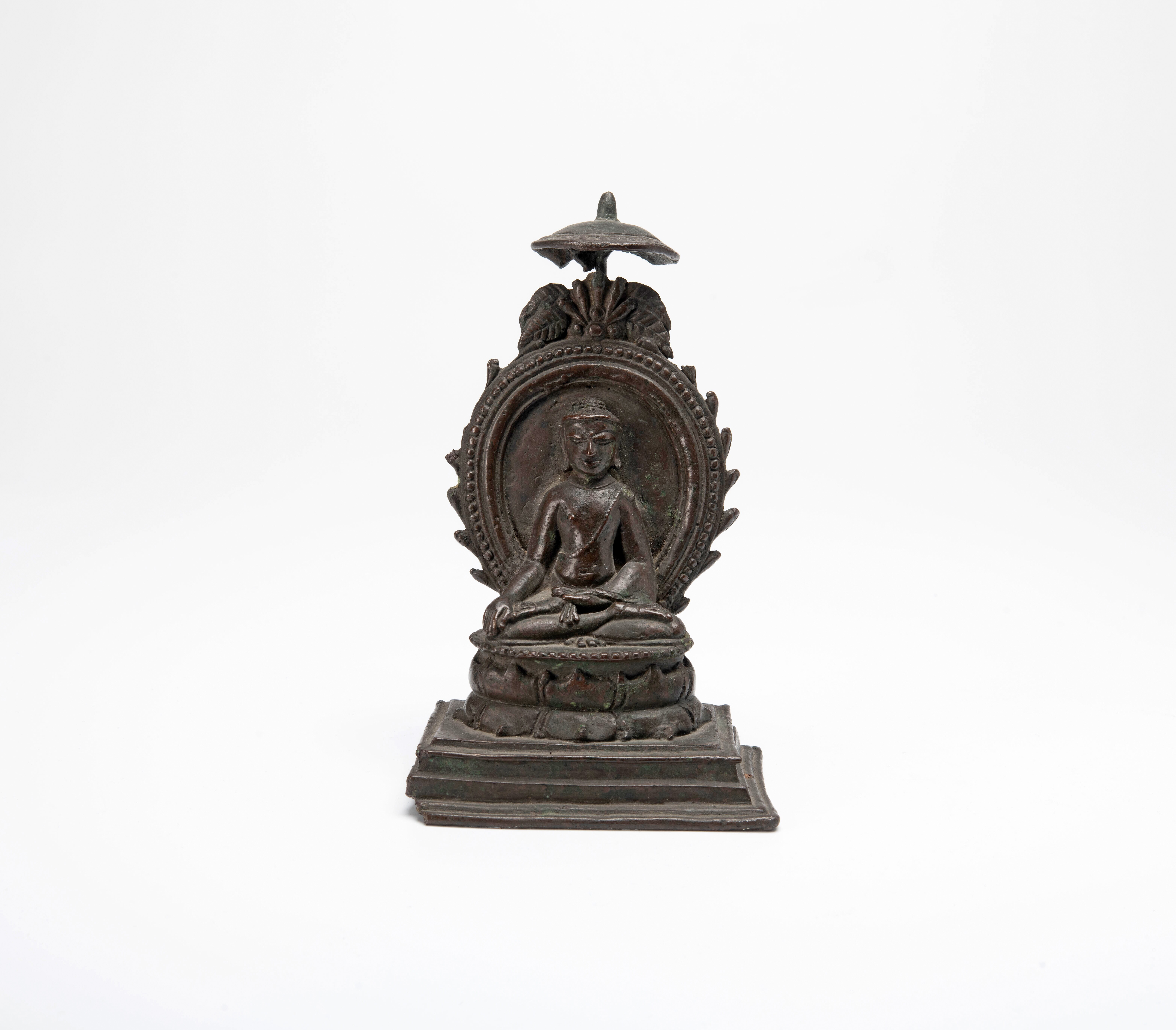 Dit beeldje toont allerlei elementen die kenmerkend zijn voor bronzen beeldjes uit Noordoost-India, zoals de grote ronde halo om het hoofd en het bovenlichaam, het parelrandje om de halo en om de lotuszetel, en de recht opgaande parasol. Mogelijk werd het vanuit India naar Java geïmporteerd.