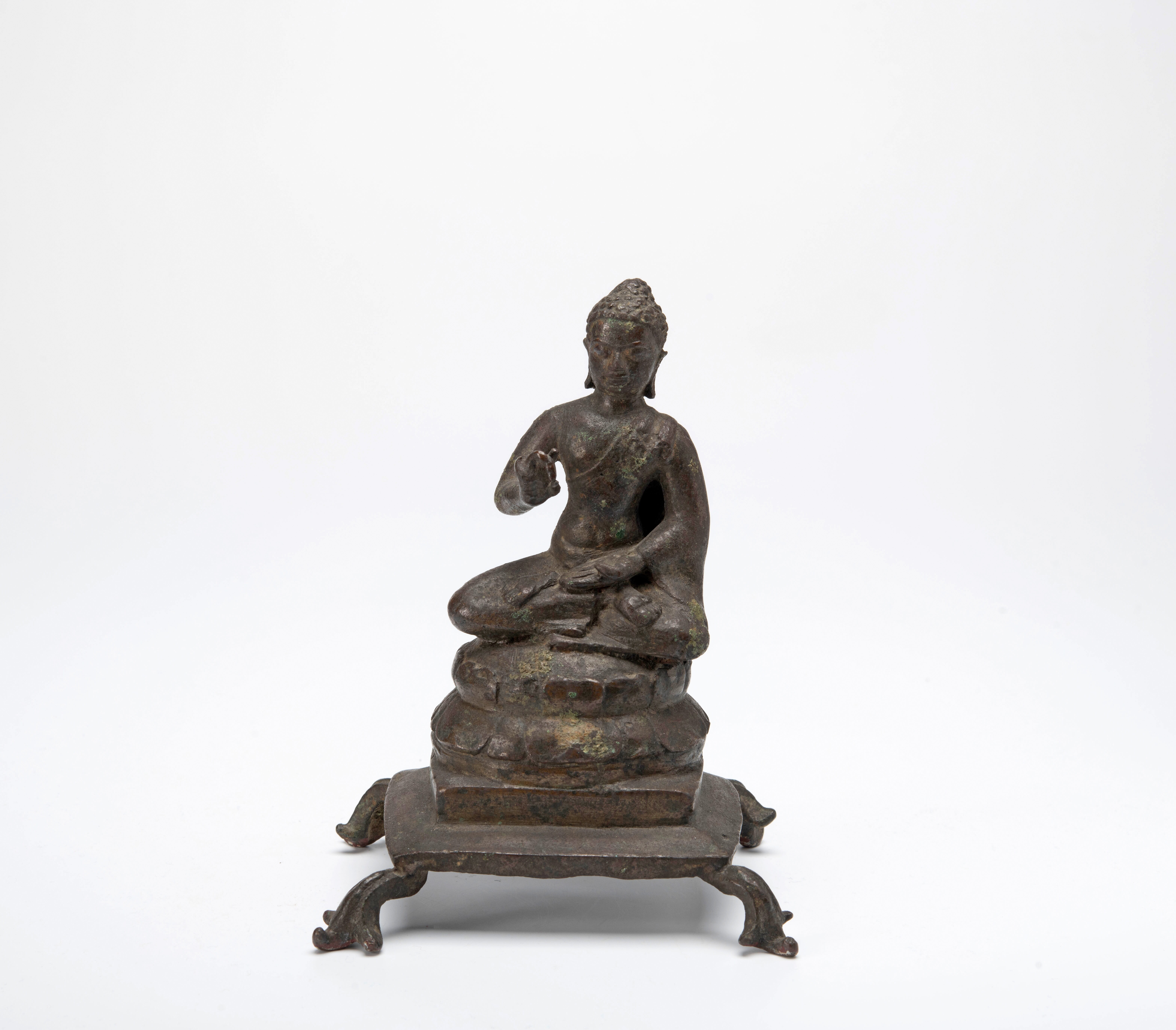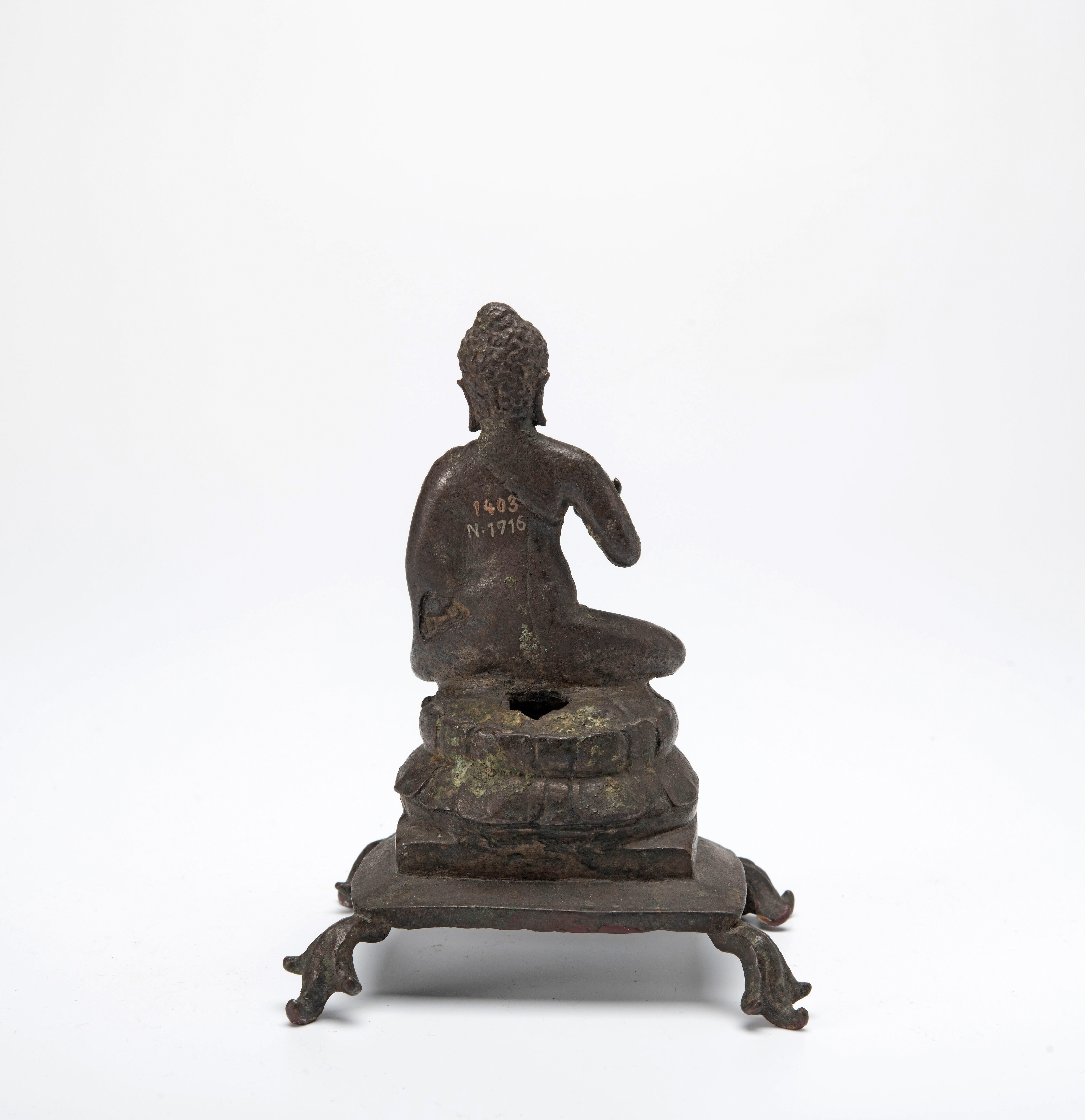 De Boeddha zit met gekruiste benen. Zijn hand is in de houding van onderwijzen, vitarka-mudra. De troon heeft pootjes, wat niet erg gebruikelijk was op Java.