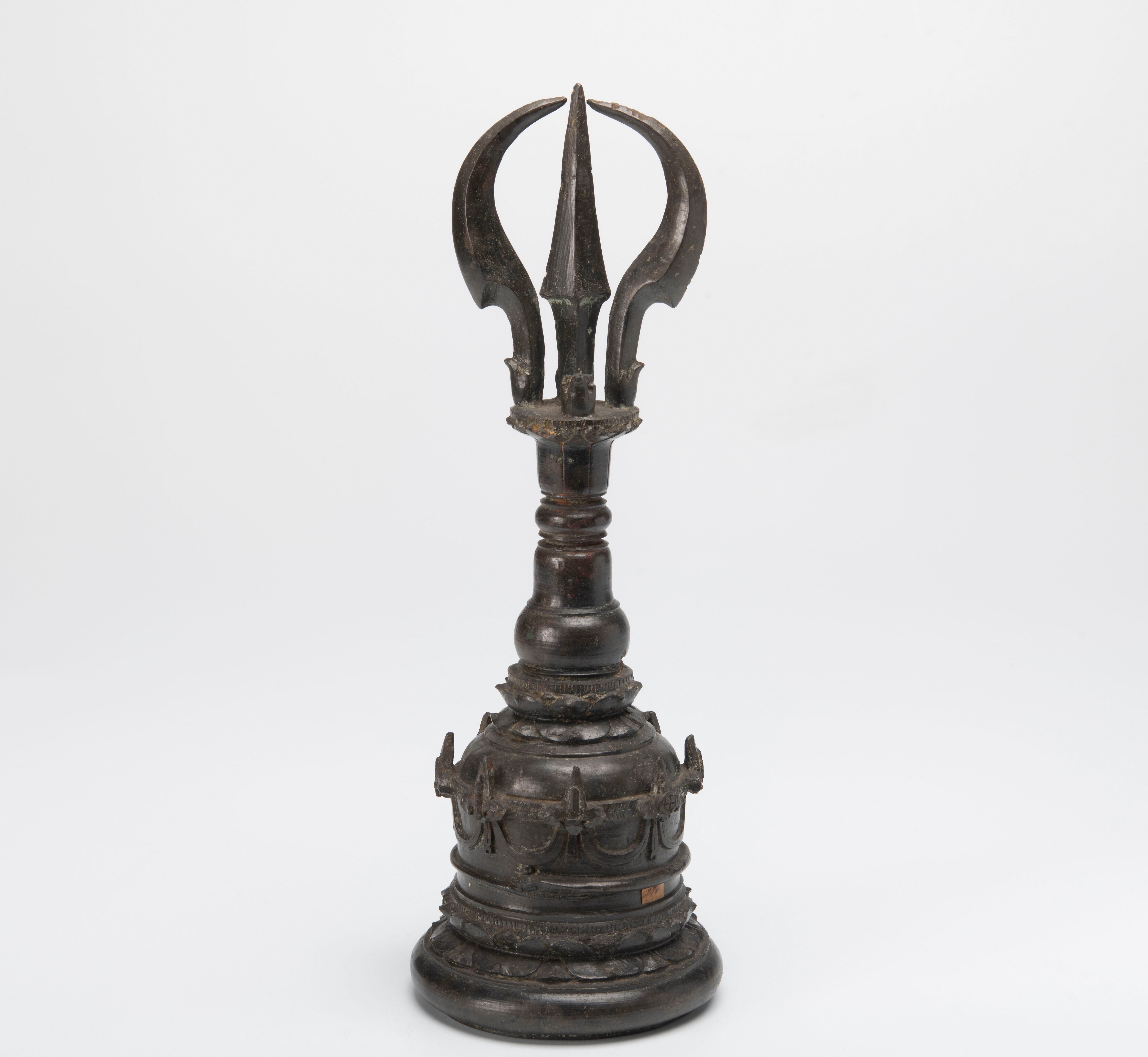 De top van deze bel heeft de vorm van een drietand, trishula, het symbool van de hindoe god Shiva.