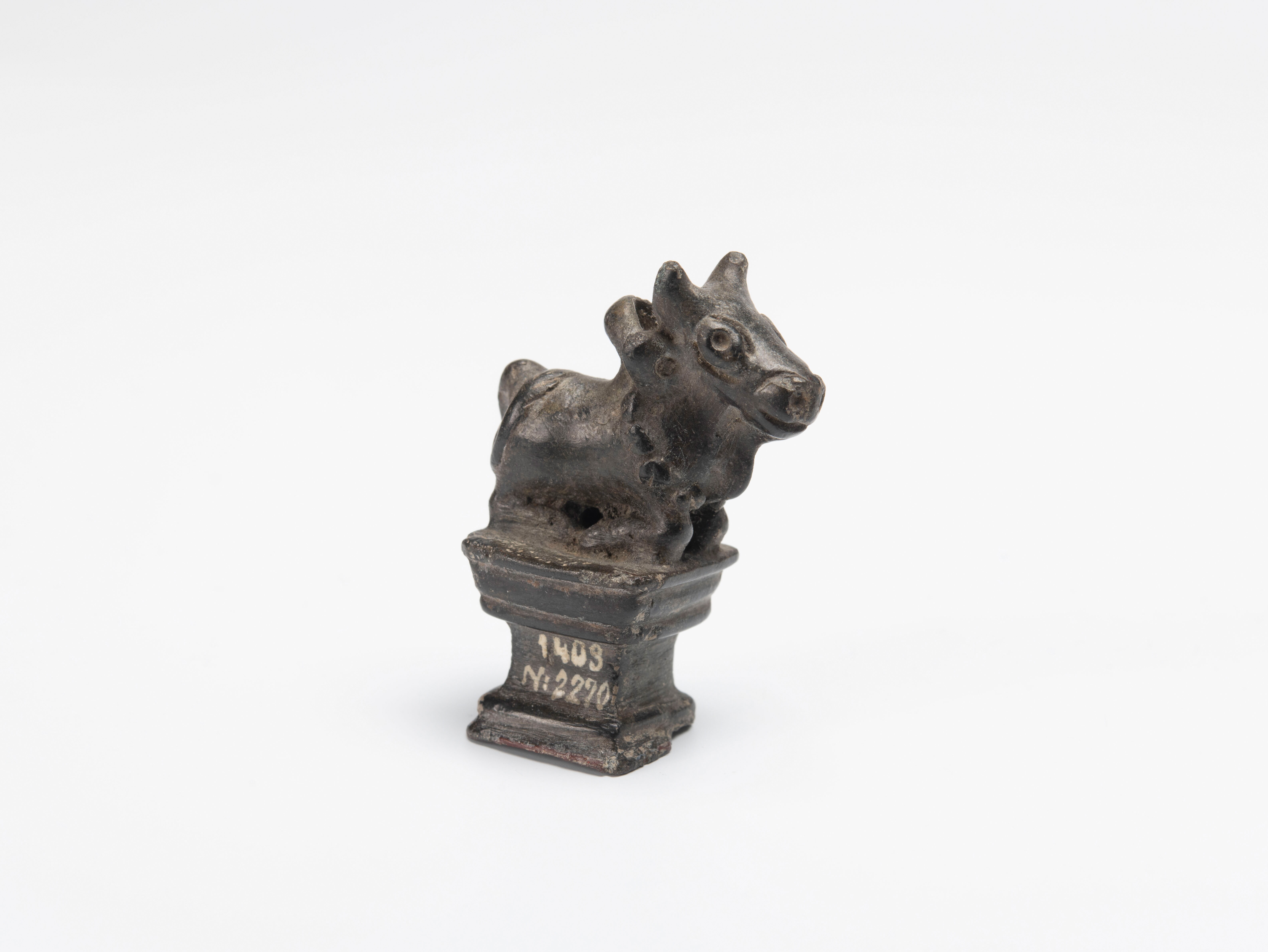 Op de rug van de stier is een kleine ring, waardoor een koord of een ketting kon worden gehaald om het object op te hangen. Waarschijnlijk was dit het topstuk van een bel.