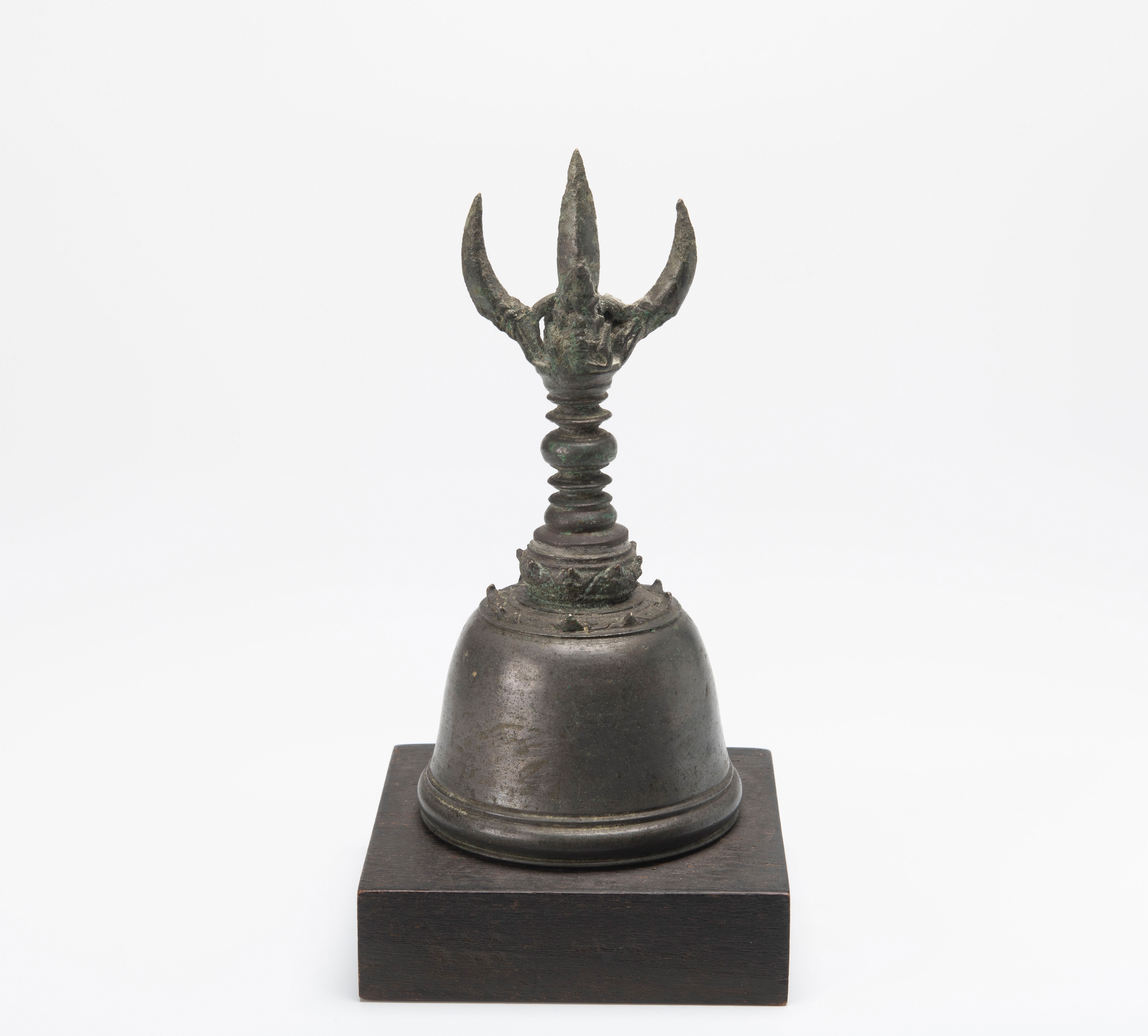 De top heeft de vorm van een drietand, trishula. Dat is het symbool bij uitstek van de hindoe god Shiva.