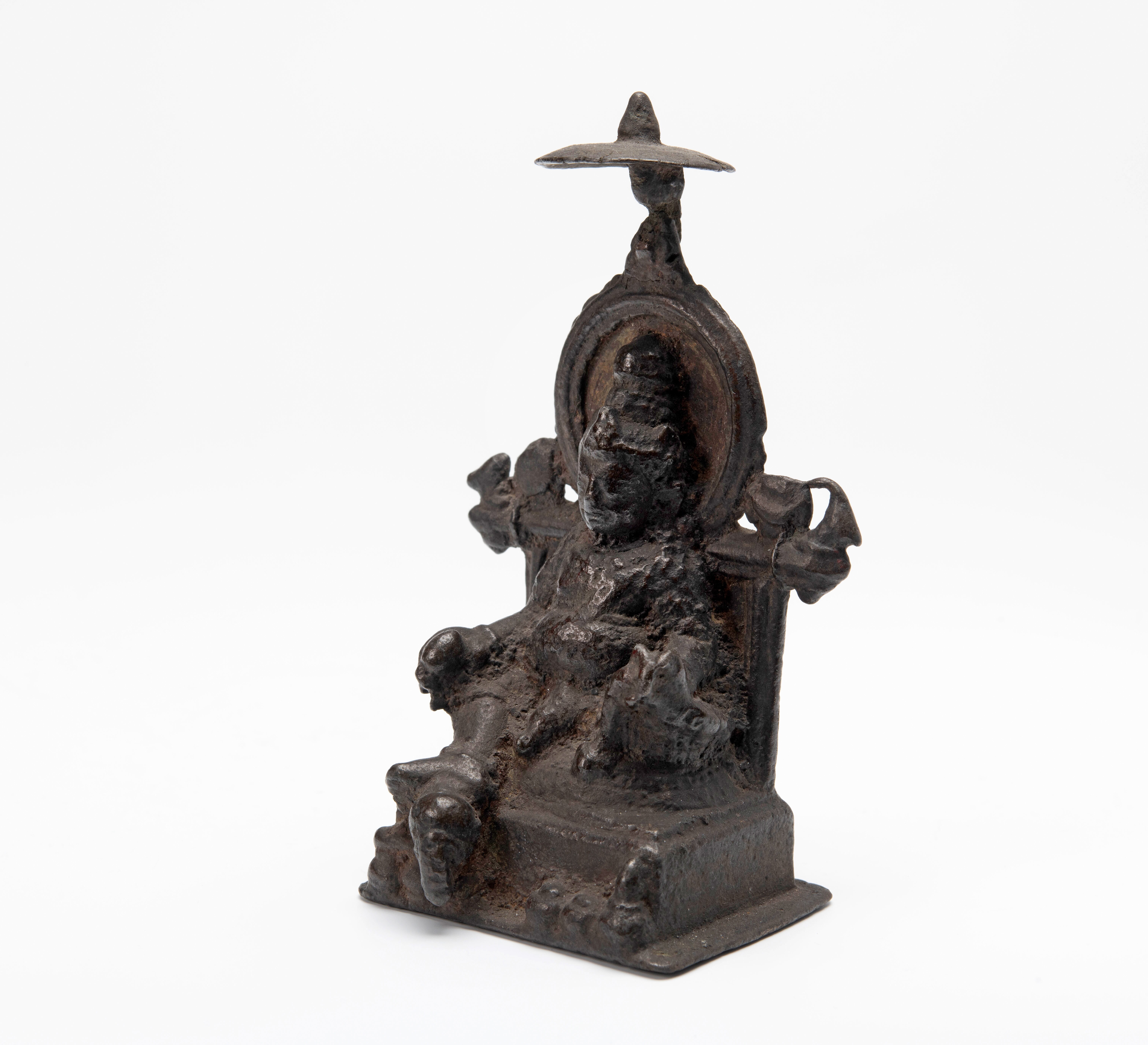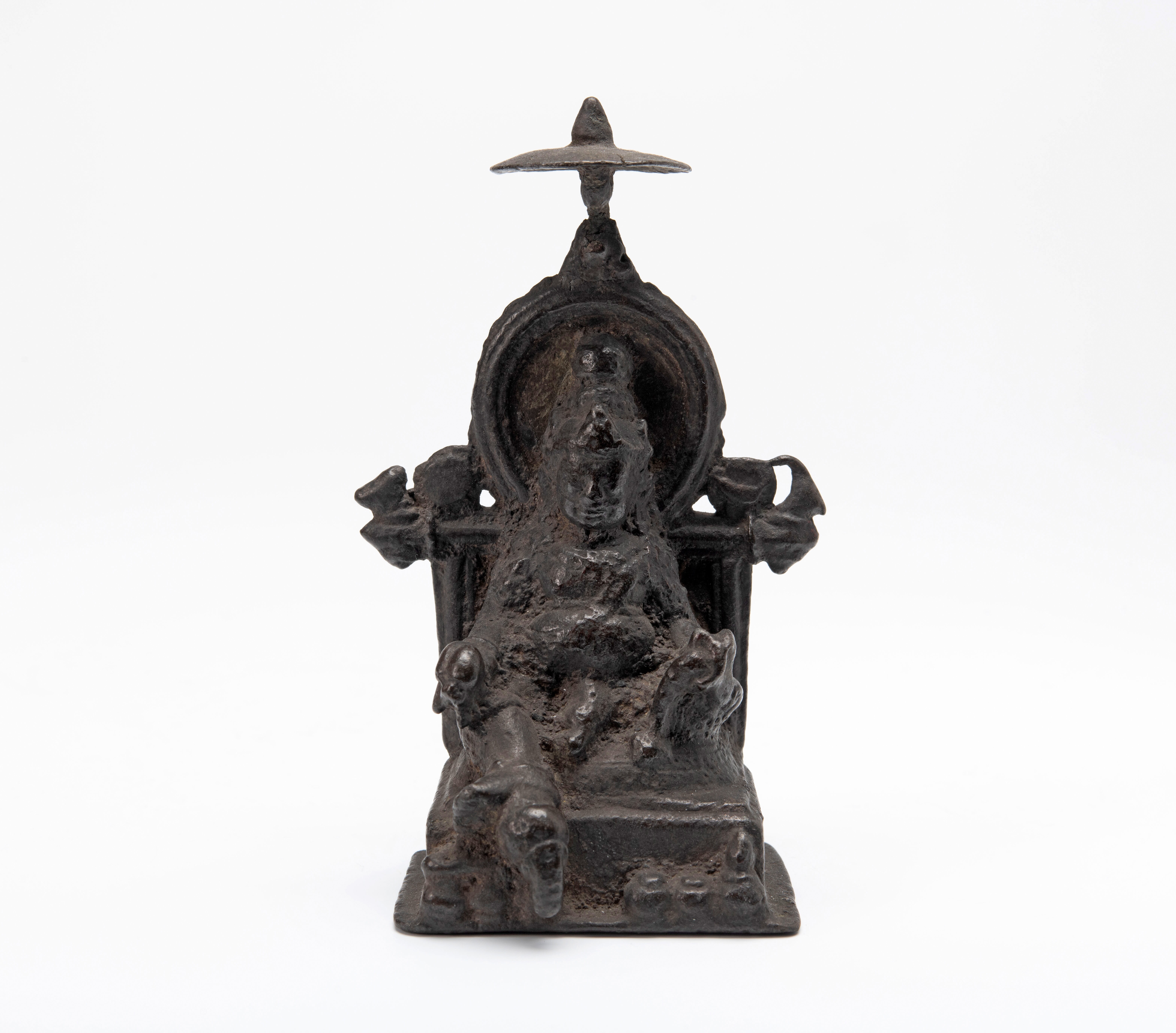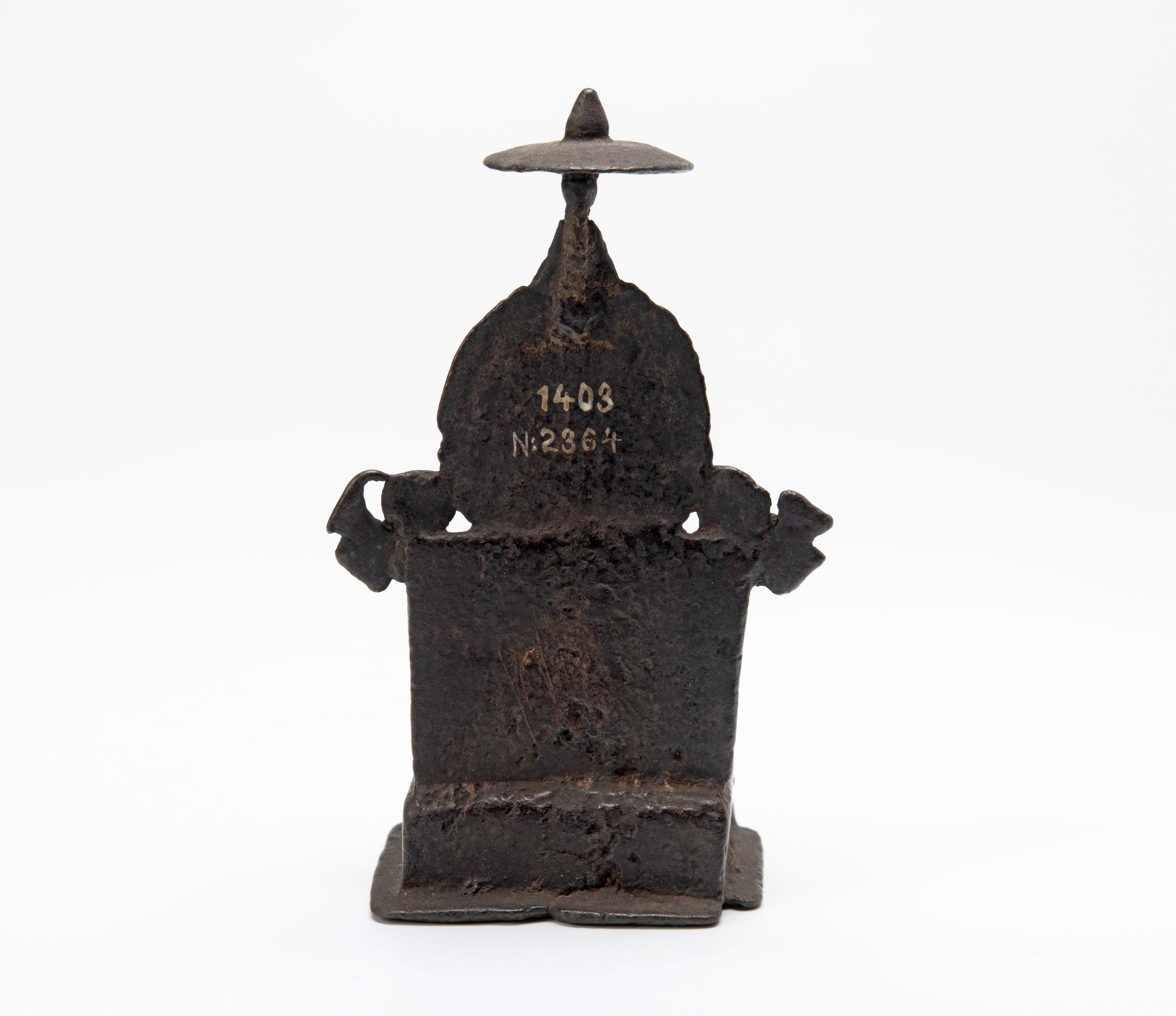Op het voetstuk van de troon zijn een aantal potten afgebeeld, als teken van de rijkdom van de godheid.