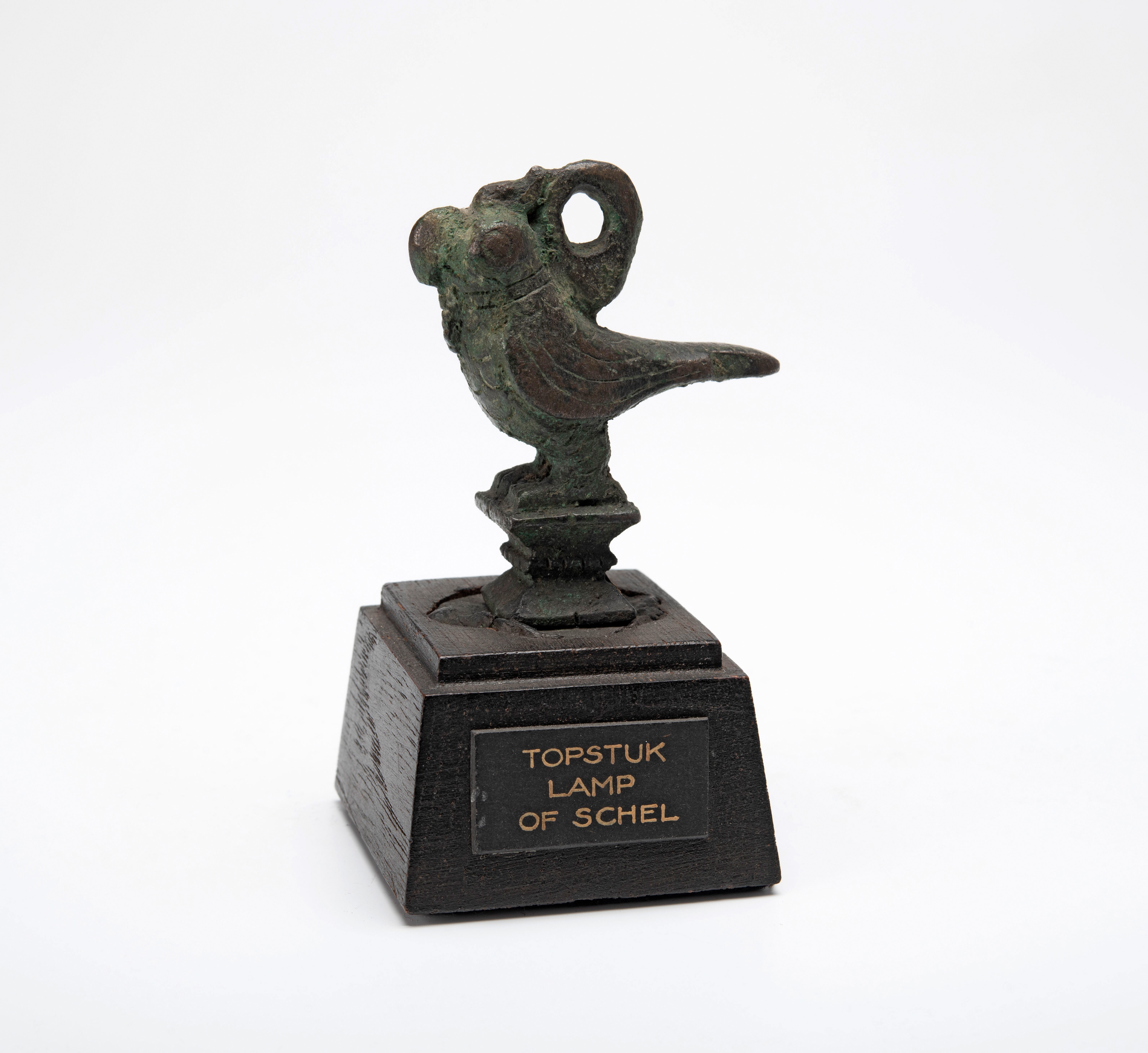 Waarschijnlijk was dit onderdeel van een lamp en werd de lamp opgehangen aan de ring op de vogel.