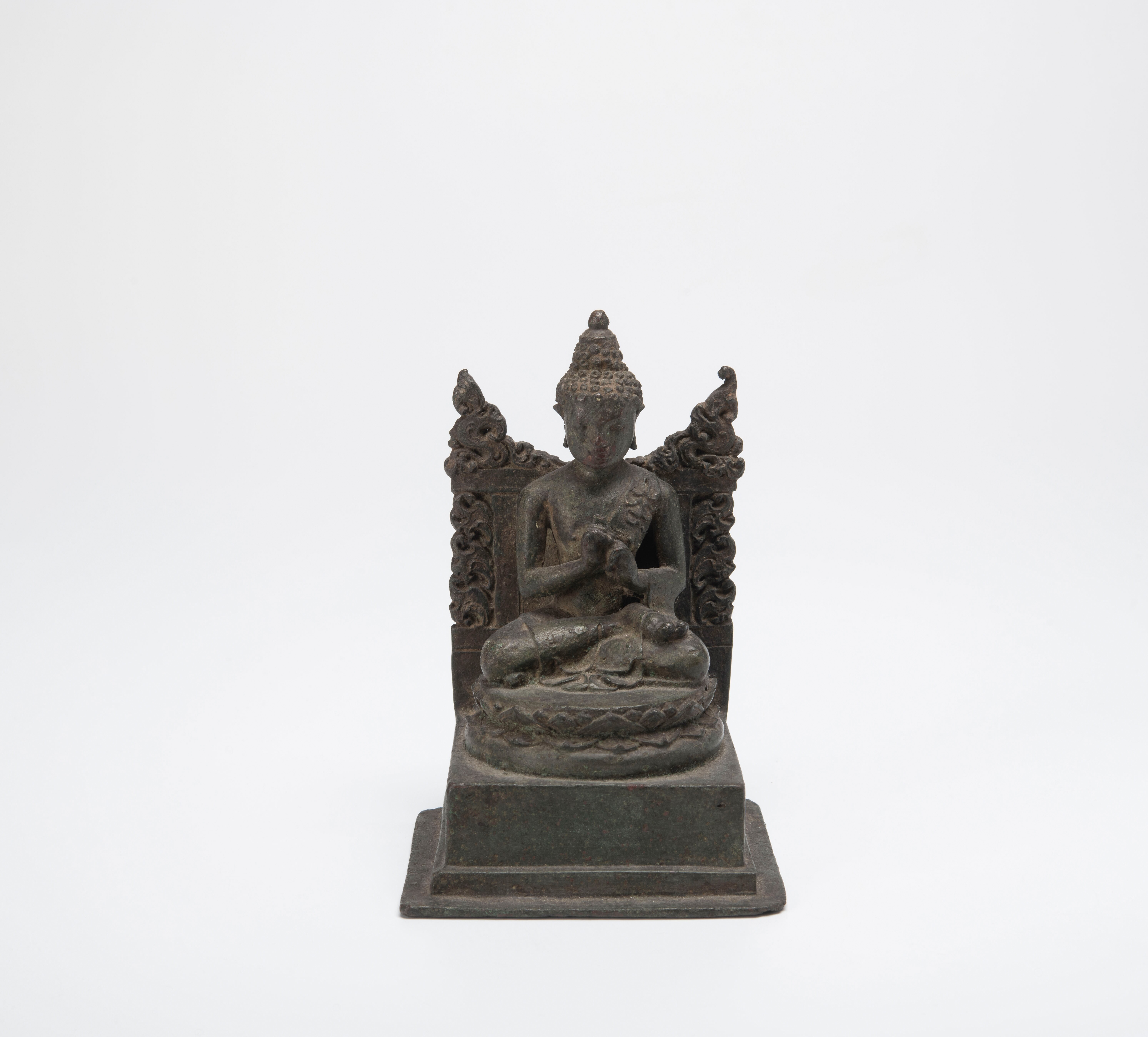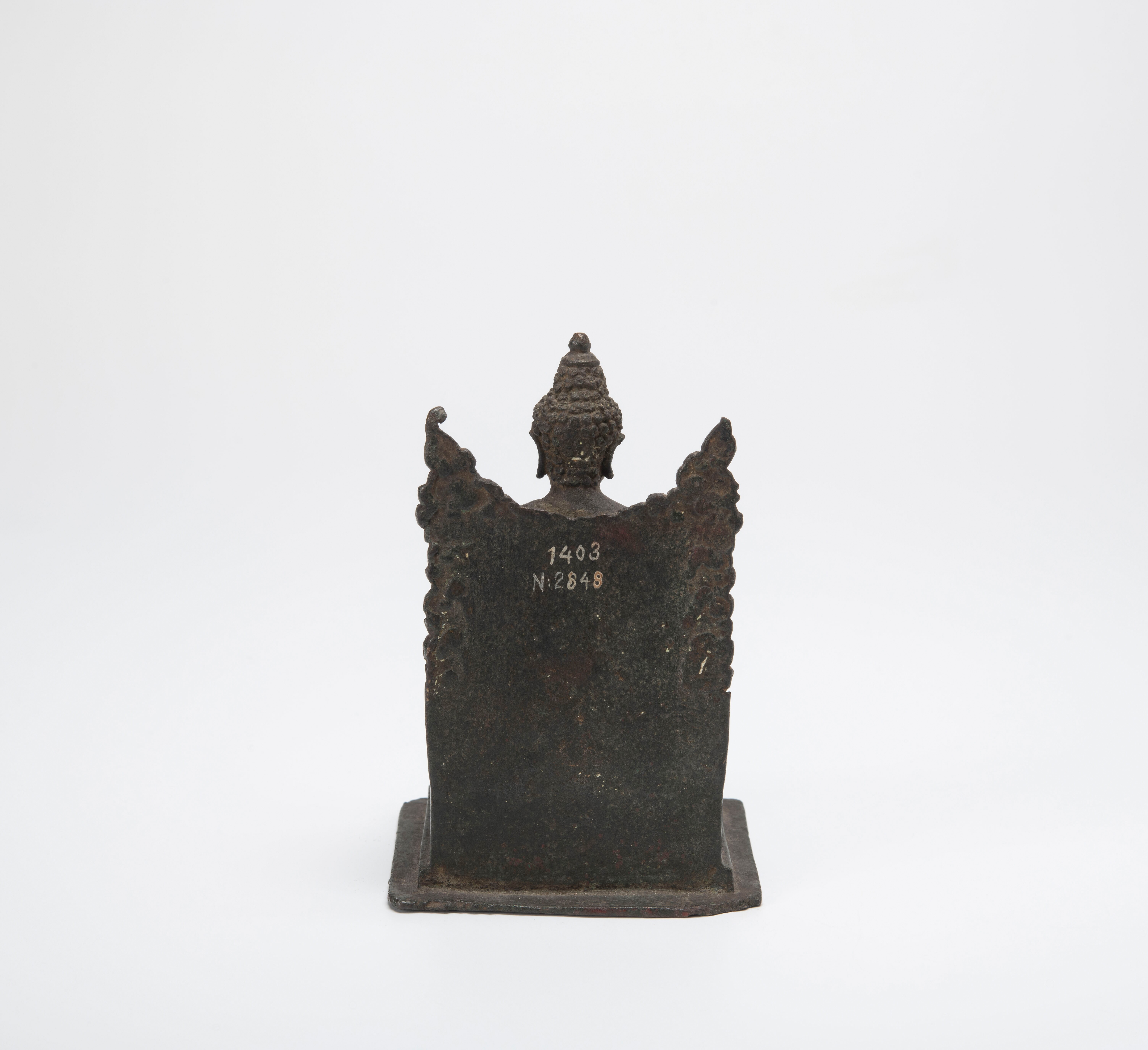 De krullerige bladranden op het achterstuk maken duidelijk dat het beeldje van na de 9e eeuw is.