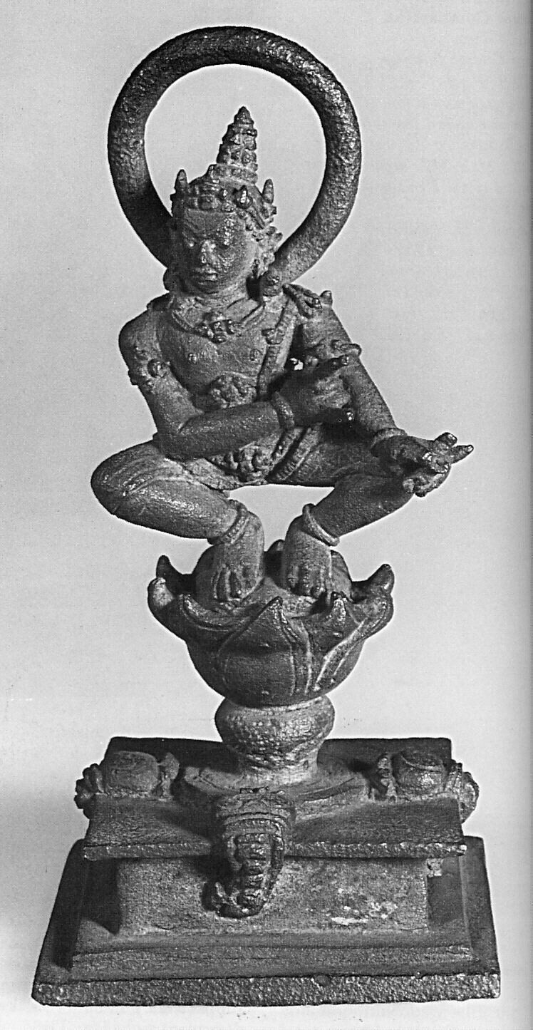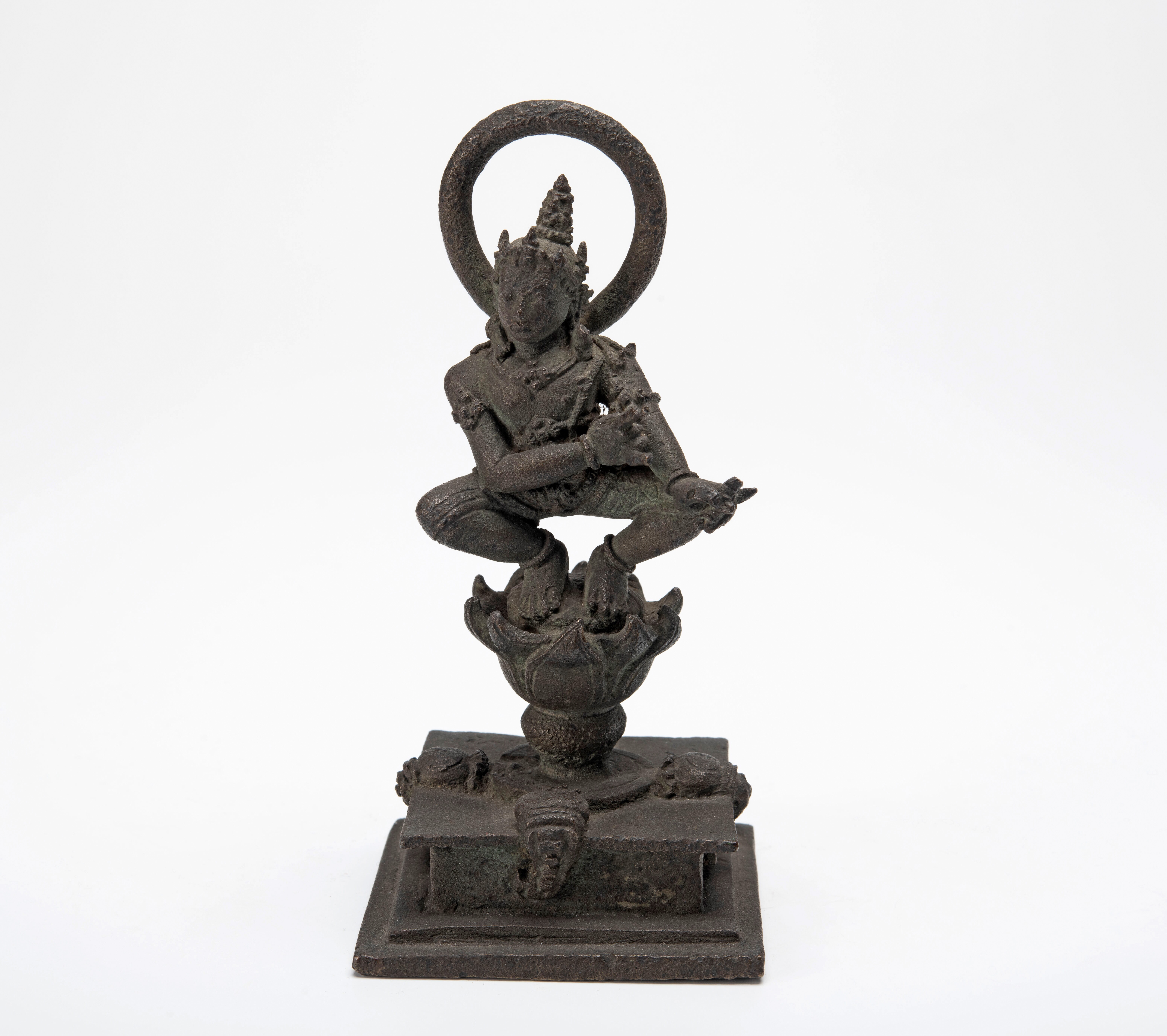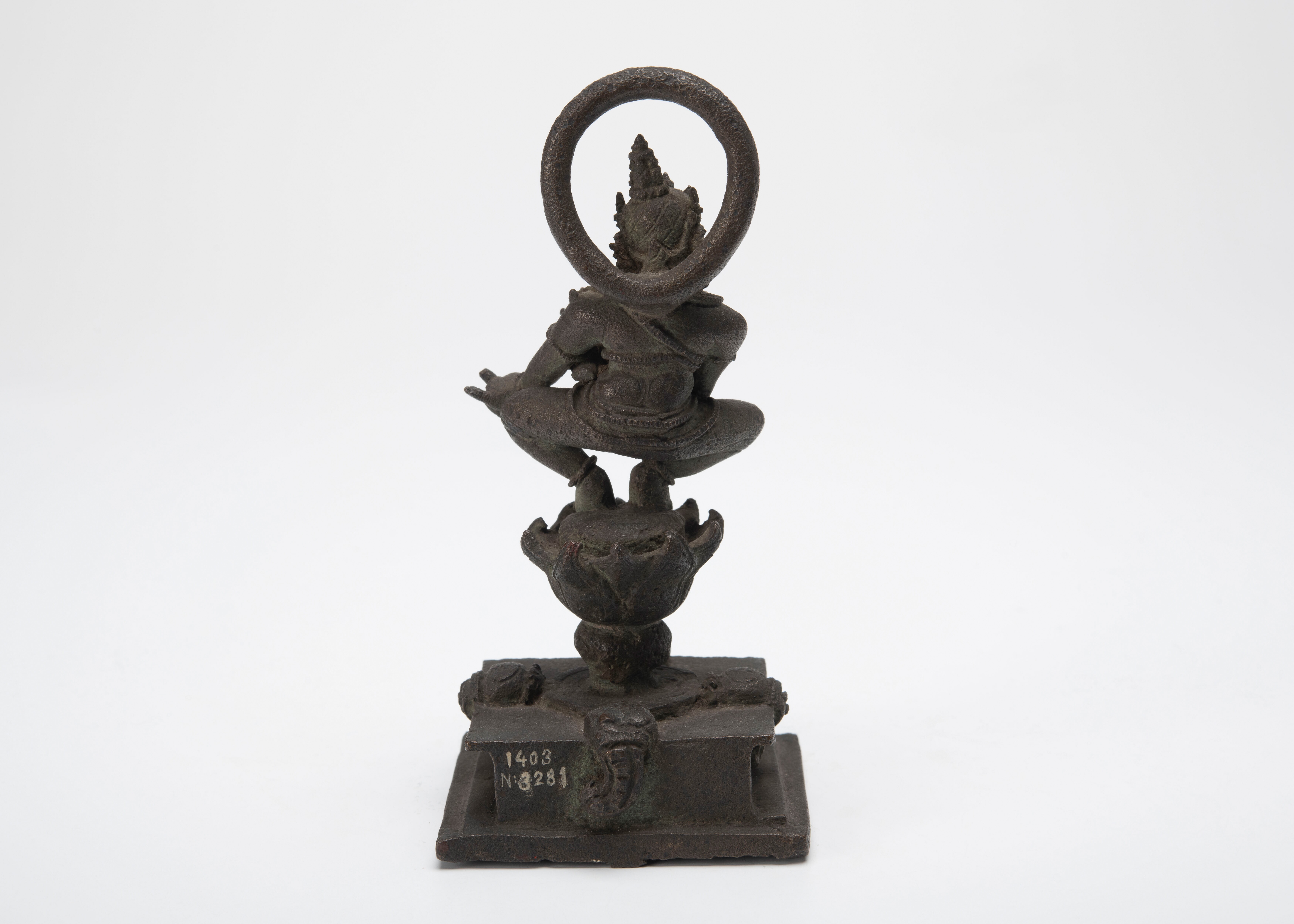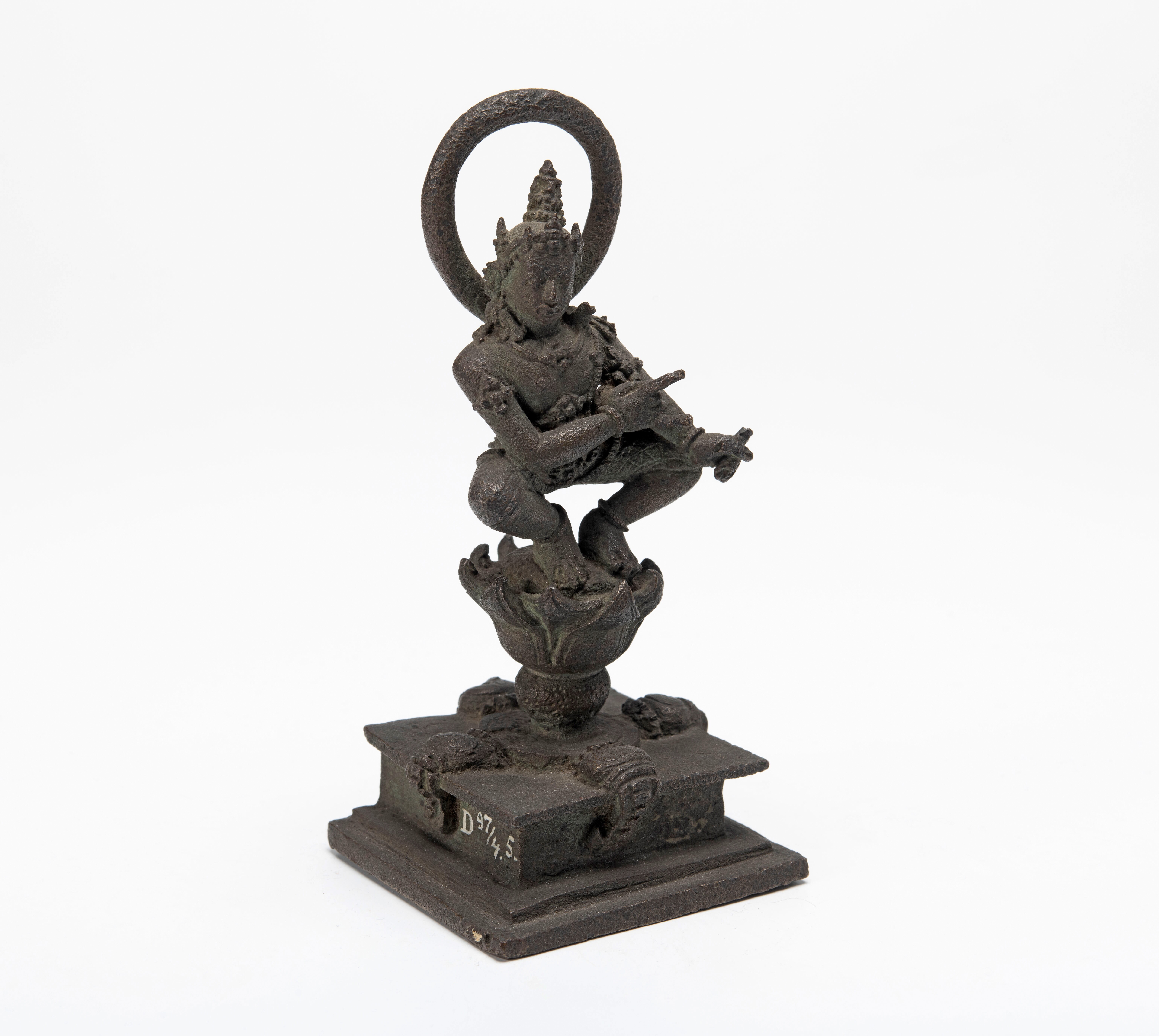 Dit beeldje staat beschreven als Kama, god van de liefde. Hij staat op een lotusbloem. Op het voetstuk liggen potten waar parelsnoeren uit tevoorschijn komen.