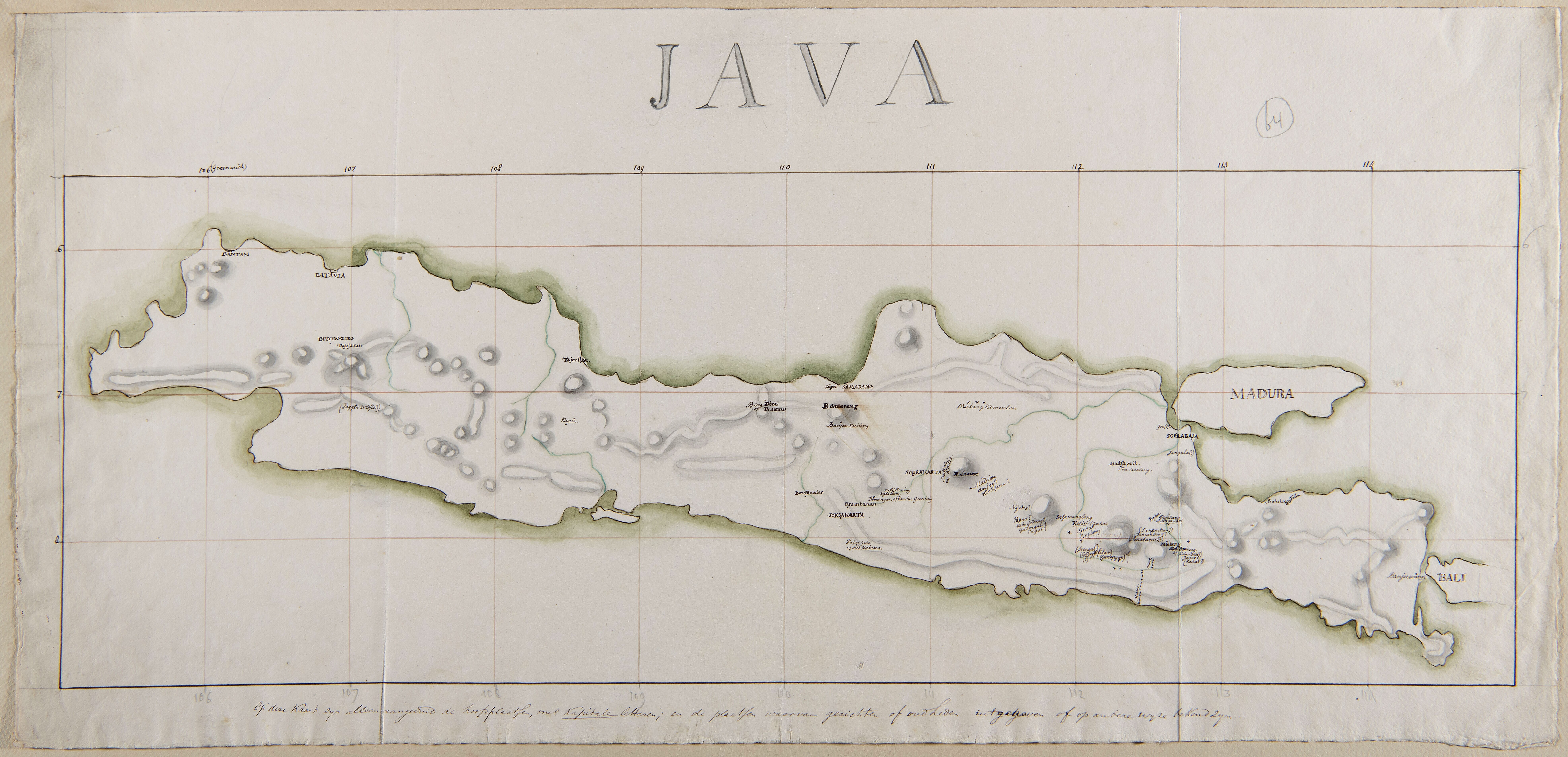 Kaart van Java met vermelding van archeologische vindplaatsen