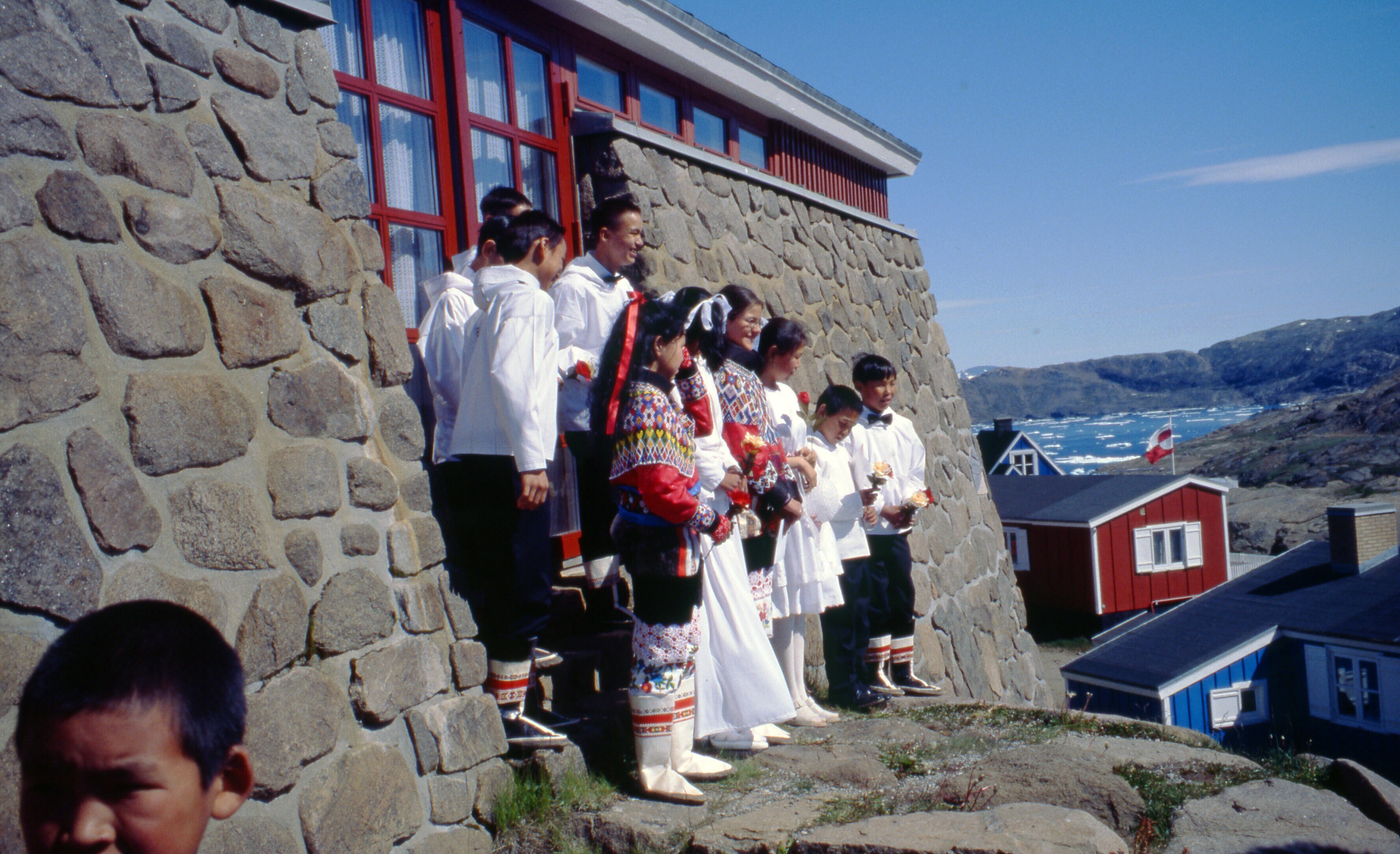 Buijs dia's 2001: Confirmaties. Priesterkledij. Rode kajak te water!