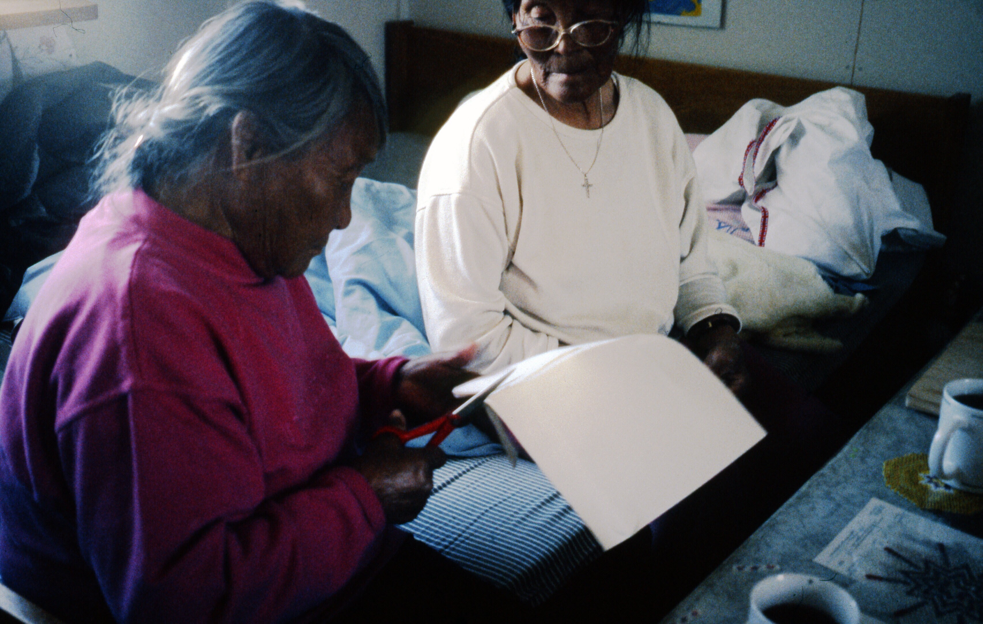 Buijs dia's 2001: Zeehondenhuid schrapen Asta Thomassen. Ulrike + kleinzoon (baby)