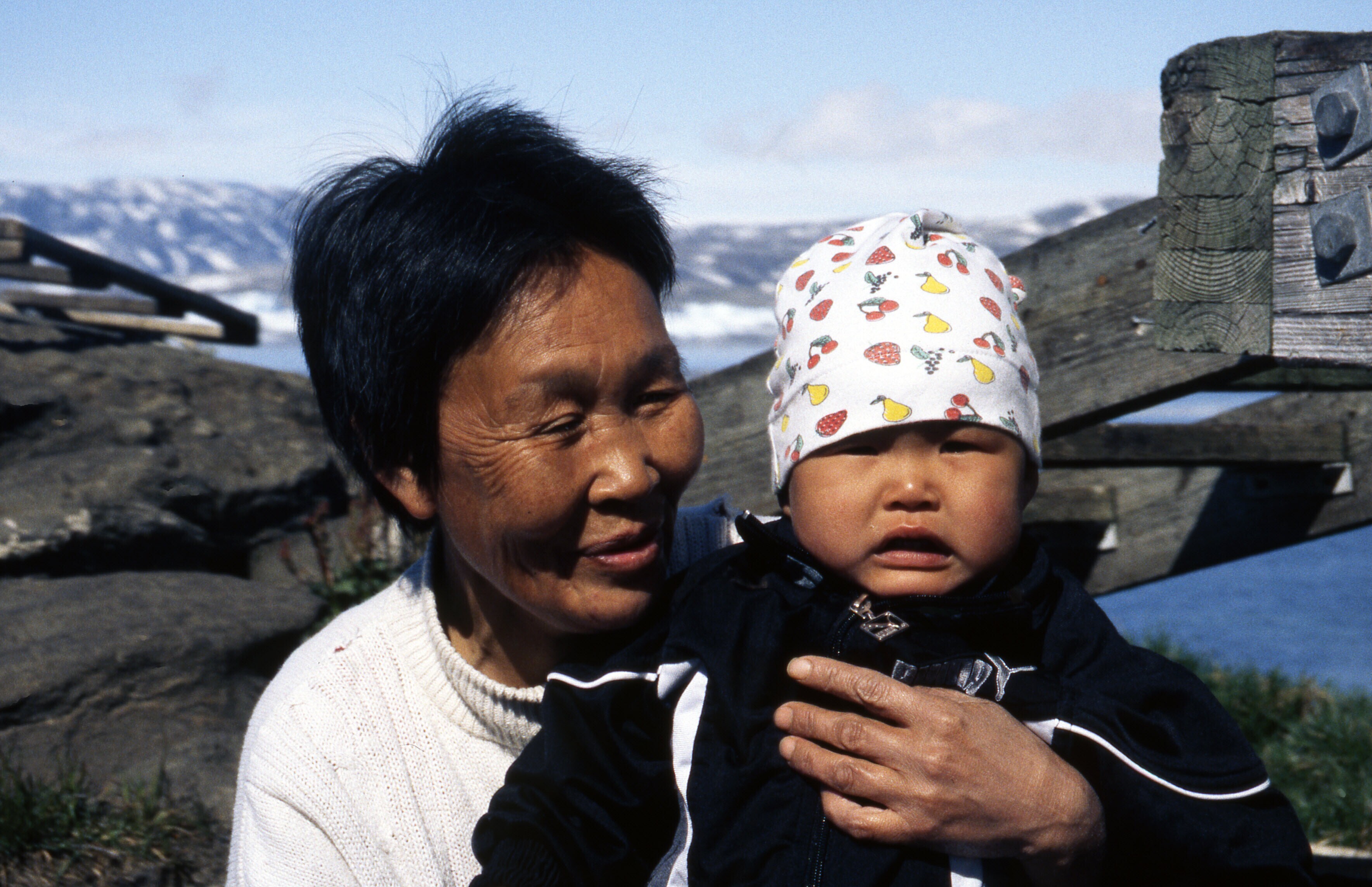 Buijs dia's 2001: Zeehondenhuid schrapen Asta Thomassen. Ulrike + kleinzoon (baby)