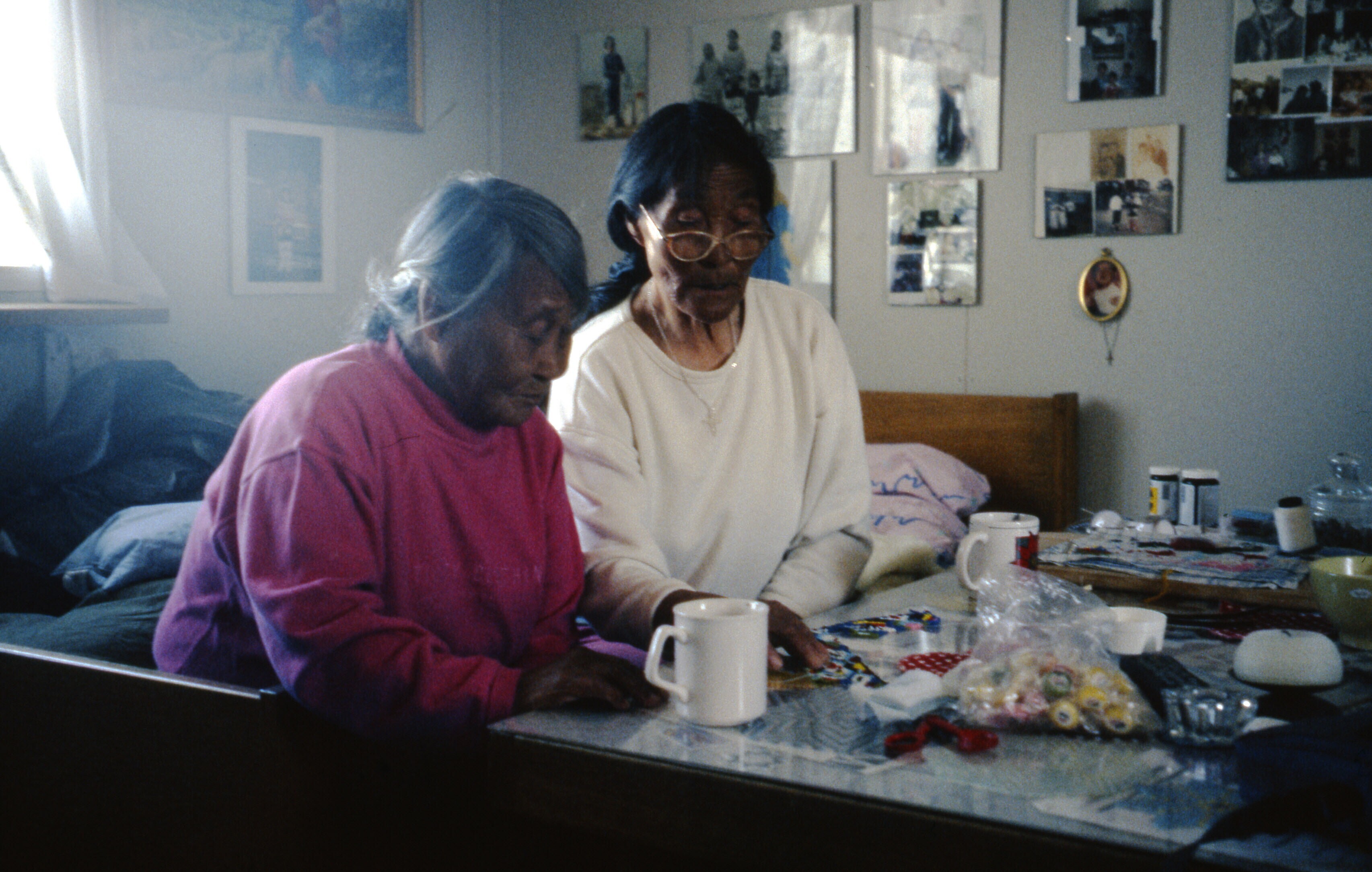 Buijs dia's 2001: Zeehondenhuid schrapen Asta Thomassen. Ulrike + kleinzoon (baby)