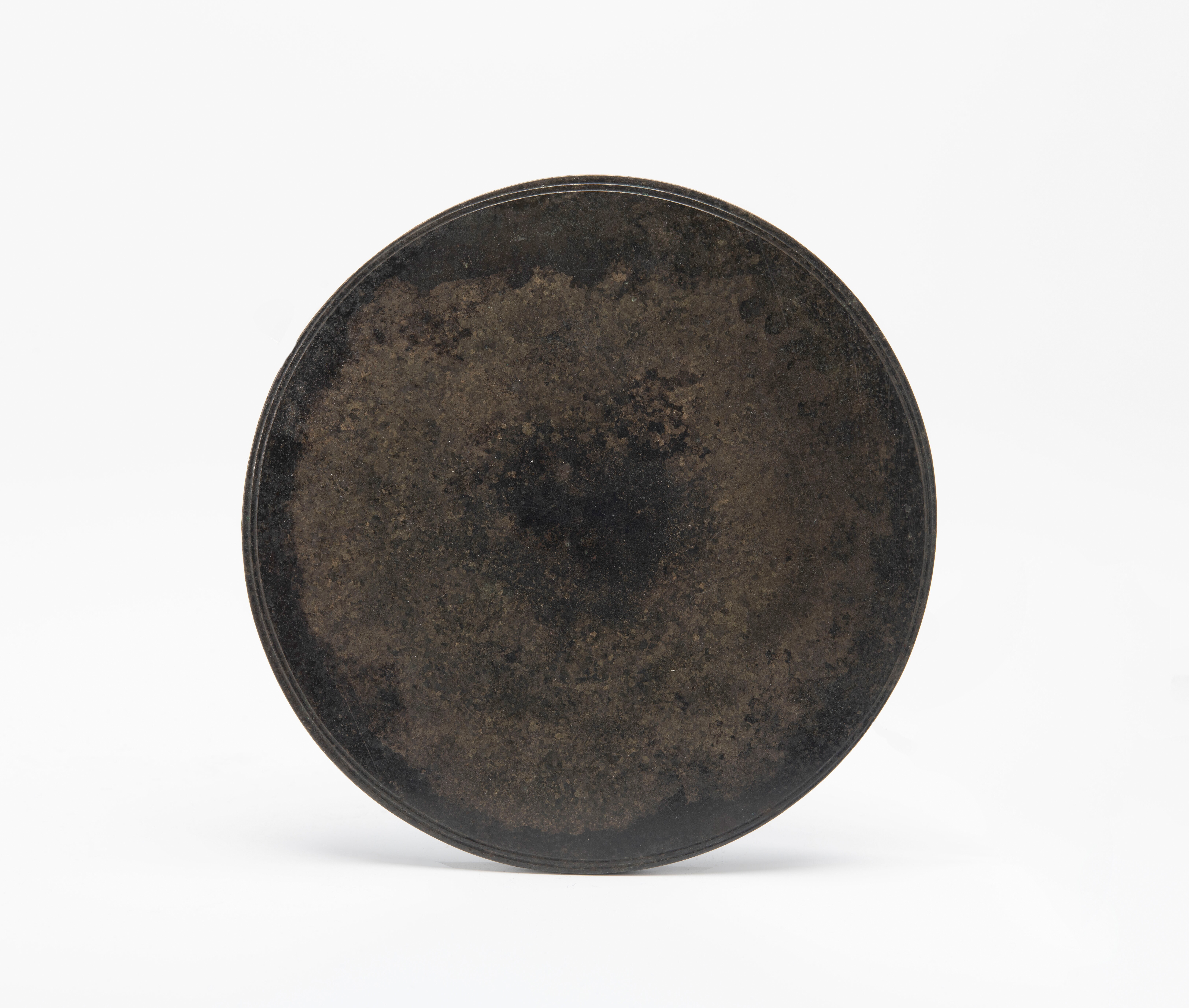 De voorkant van de spiegel is glad gepolijst. De achterkant heeft een versiering van concentrische cirkels.