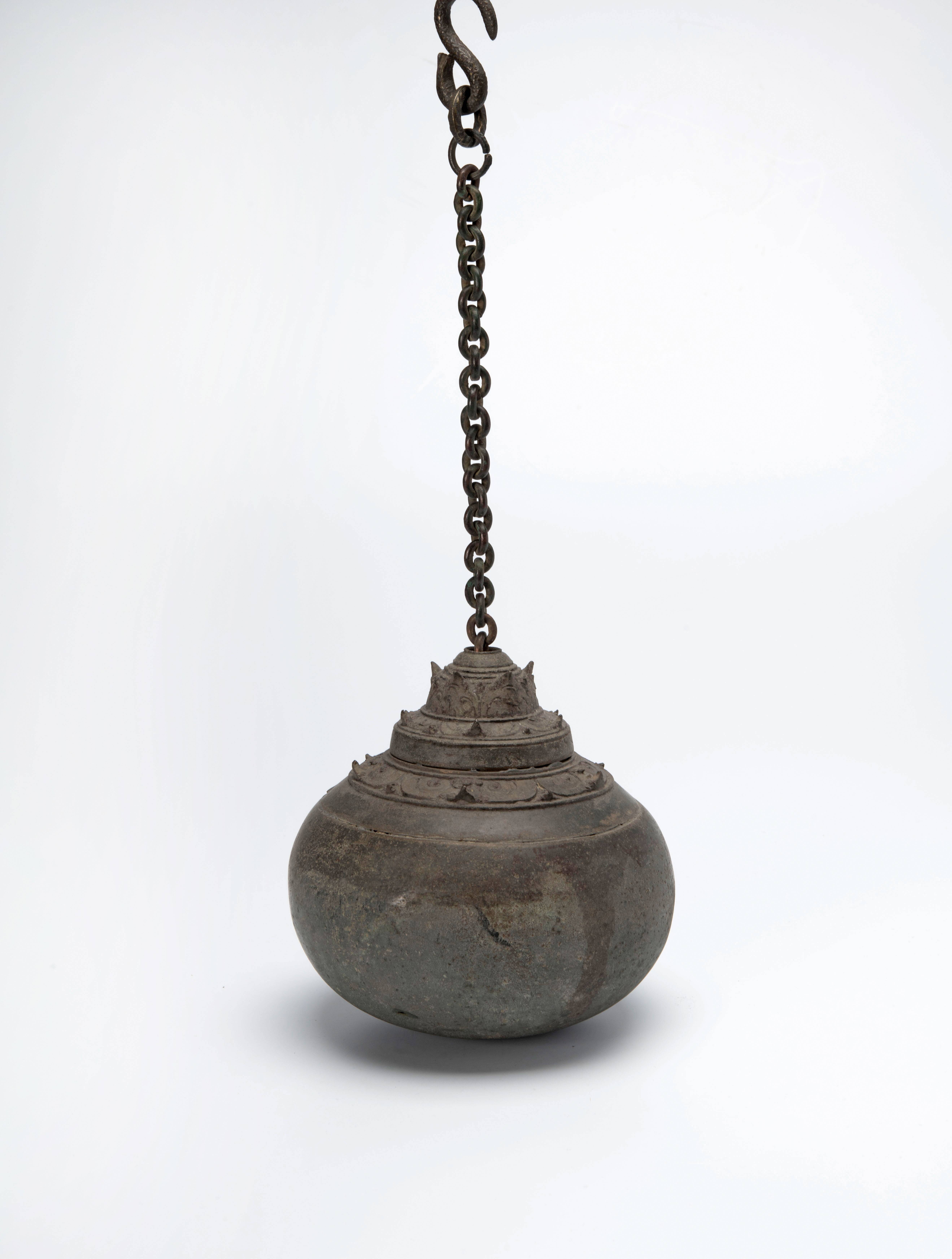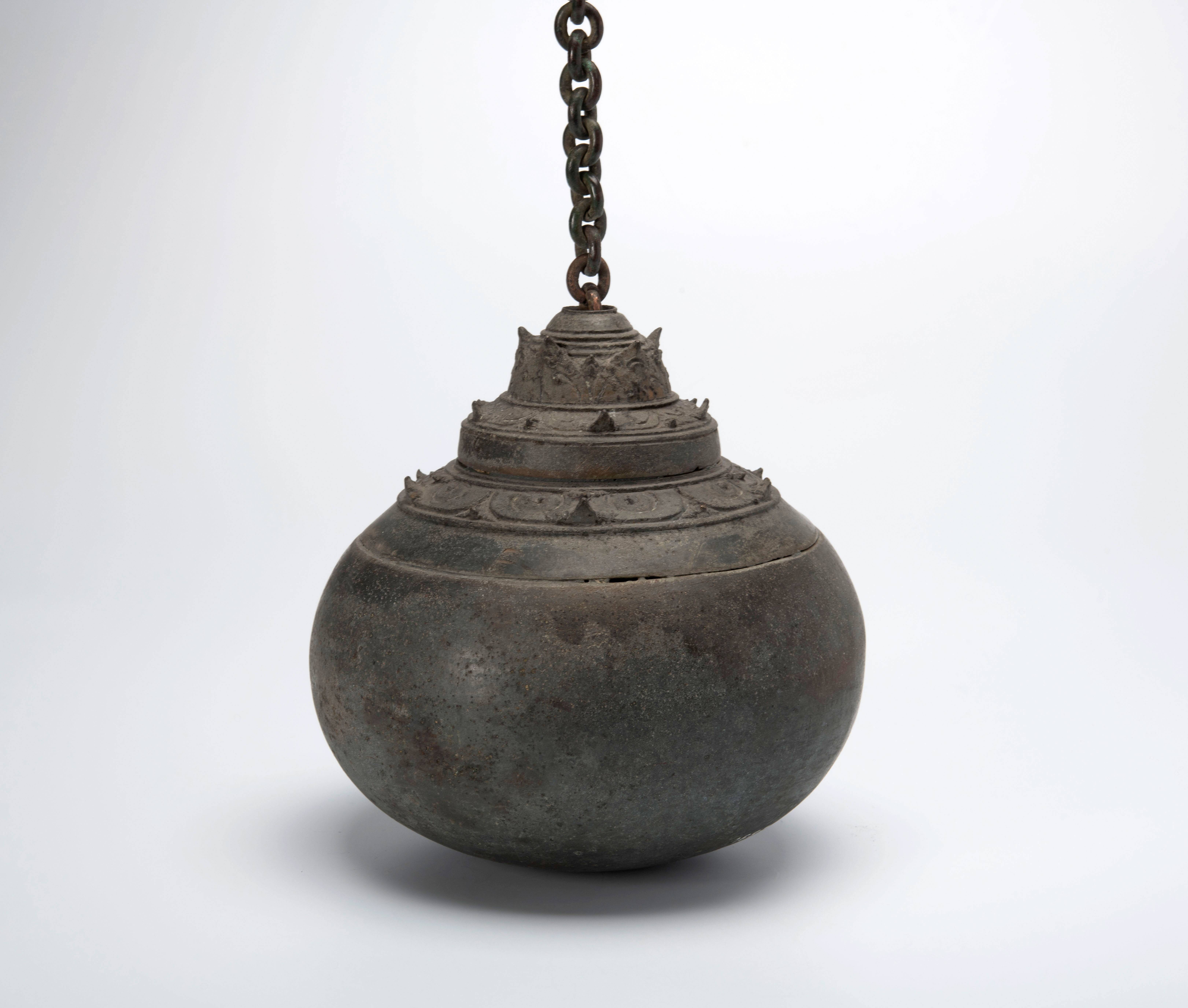 Het is niet helemaal duidelijk of dit ook een bel voor een asceet was. Er zit geen spleet aan de onderkant, zoals gebruikelijk zou zijn.