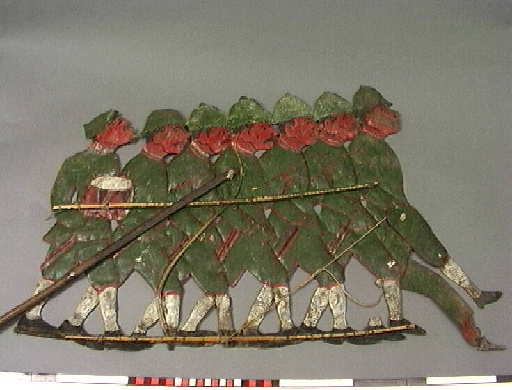 Wajangpop; voorstellende een groep Hollandse soldaten