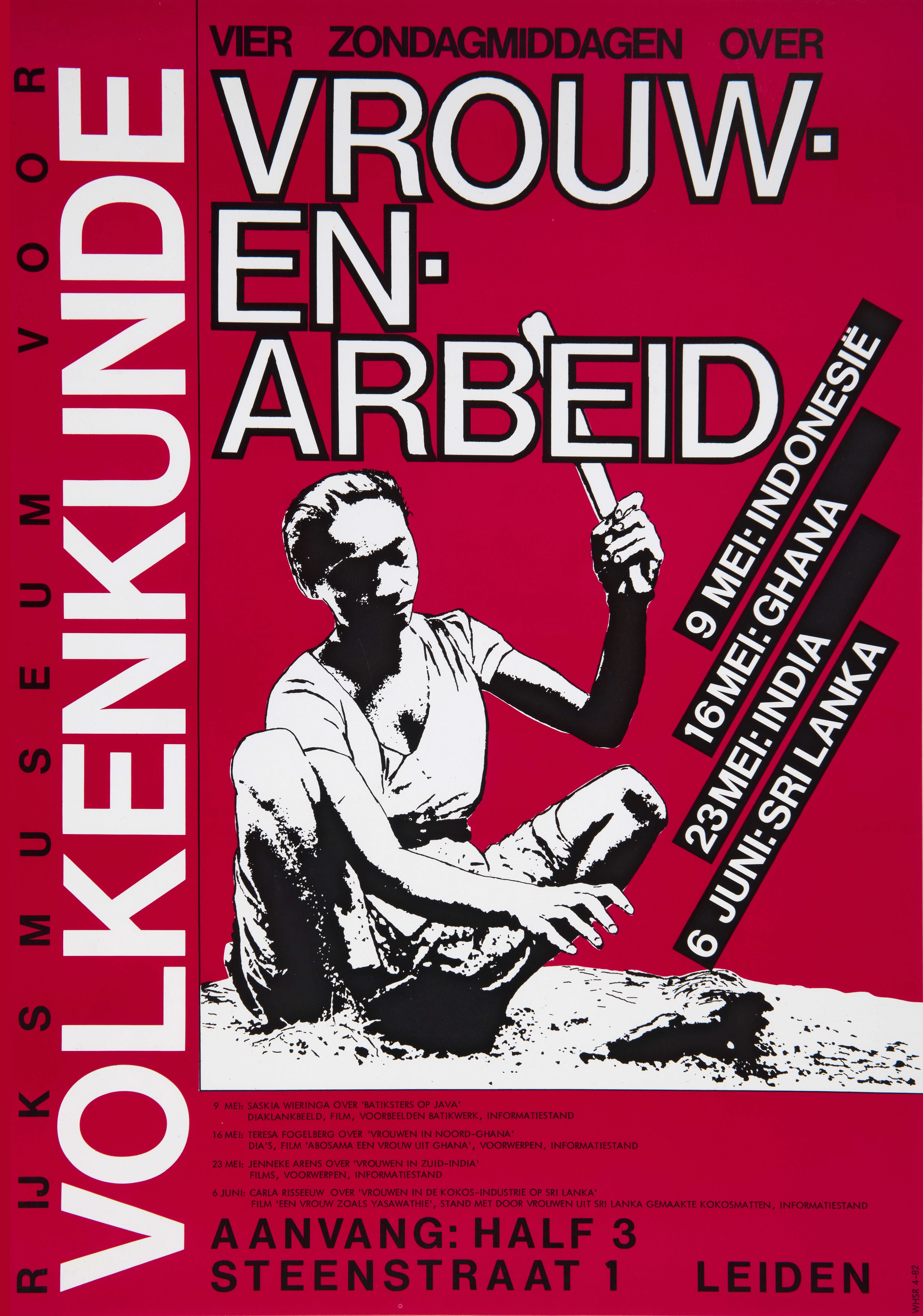 Affiche 'Vier zondagmiddagen over vrouwenarbeid' in het Rijksmuseum voor Volkenkunde