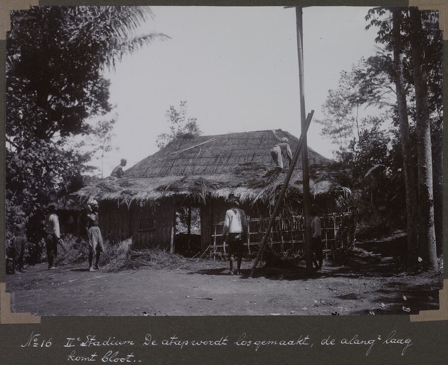 'IIe Stadium. De atap wordt losgemaakt, de alang-alang laag komt bloot.'