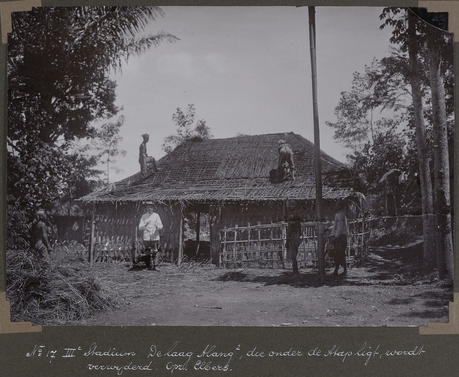 'IIIe Stadium. De laag alang-alang, die onder de Atap ligt, wordt verwijderd. Opz. Elbers.'