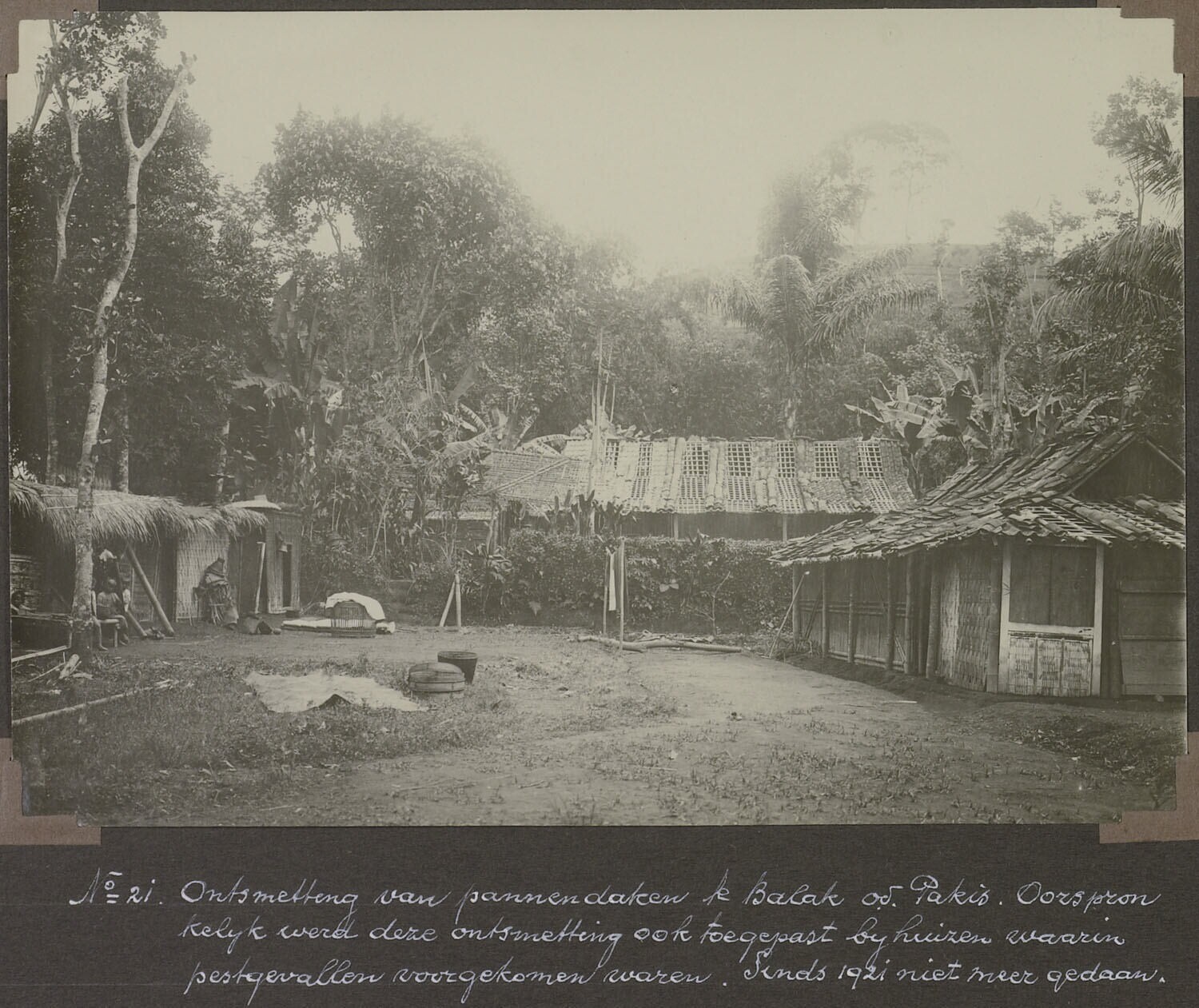 'Ontsmetting van pannendaken te Balak o.d. pakis. Oorspronkelijk werd deze ontsmetting ook toegepast bij huizen waarin pestgevallen voorgekomen waren. Sinds 1921 niet meer gedaan.'