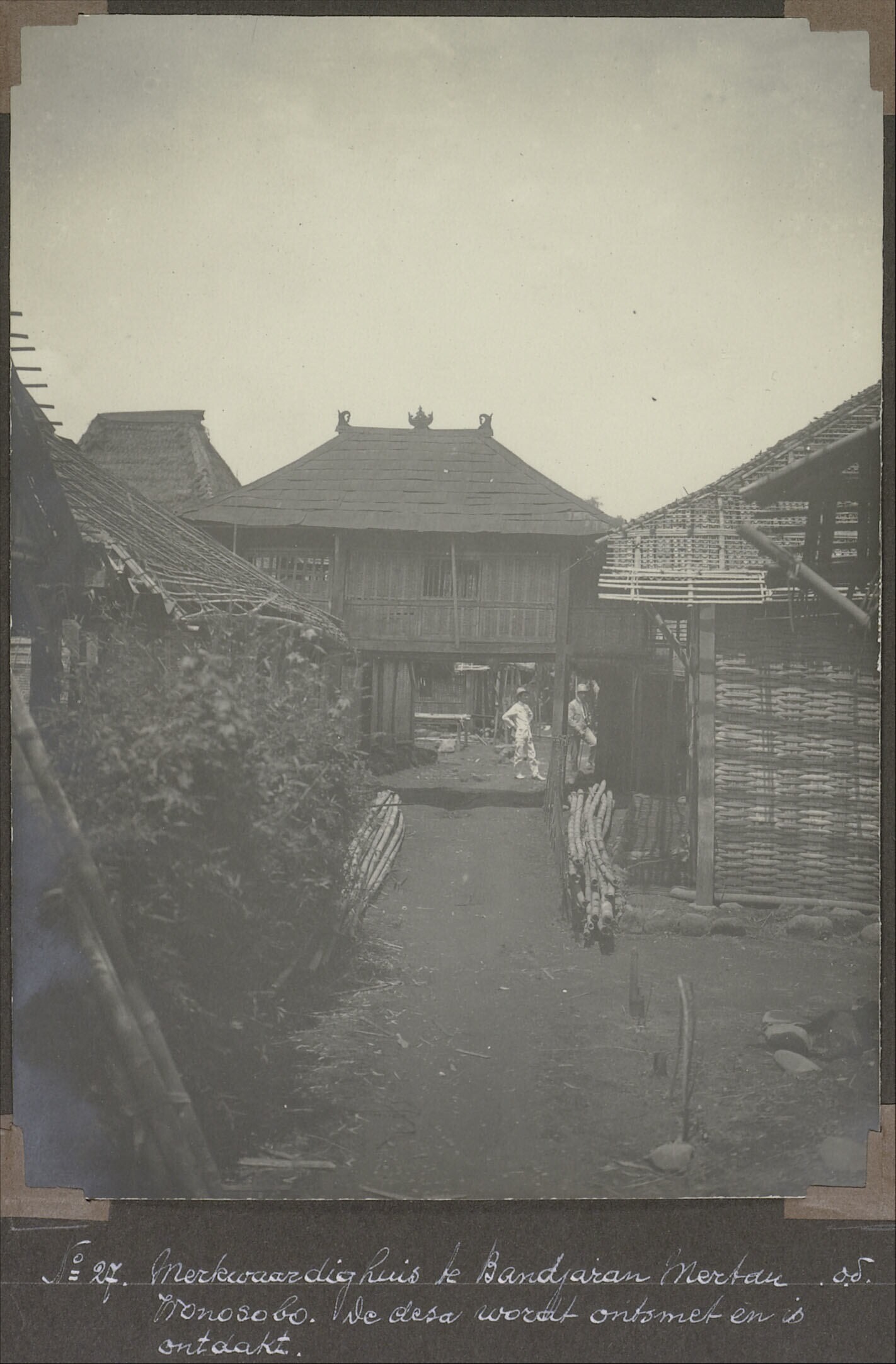 'Merkwaardig huis te Bandjaran Mertau o.d. Wonosobo. De desa wordt ontsmet en is ontdakt.'