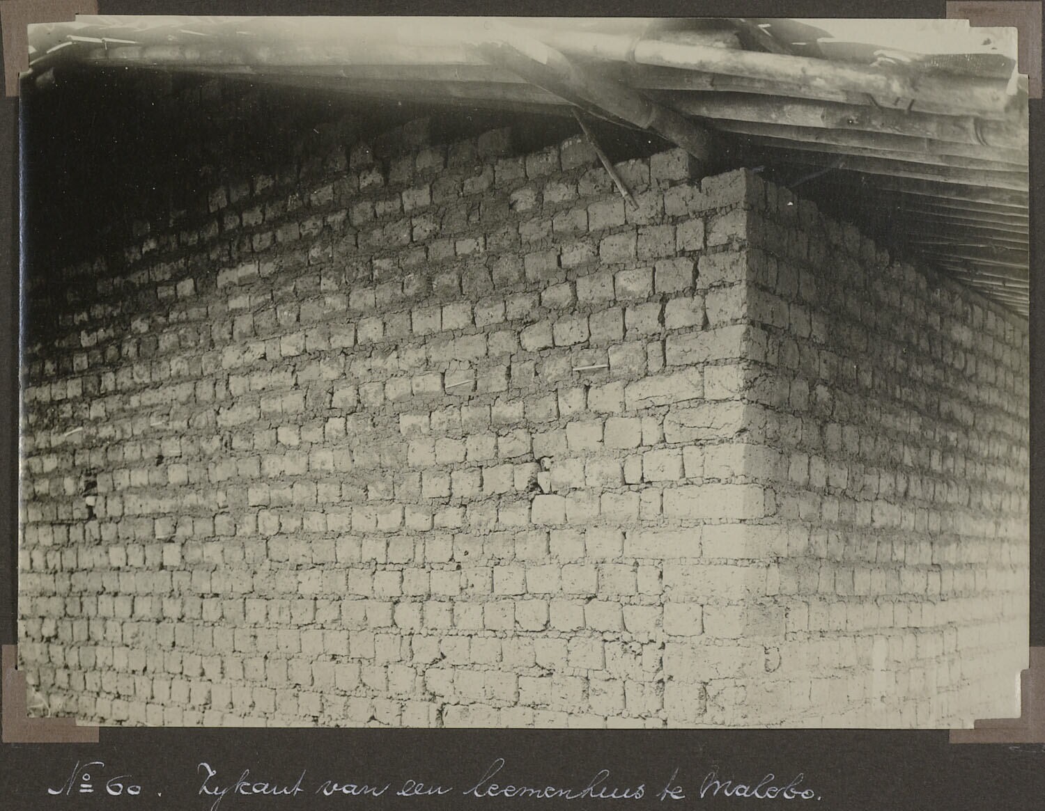 'Zijkant van een leemenhuis te Malebo.'