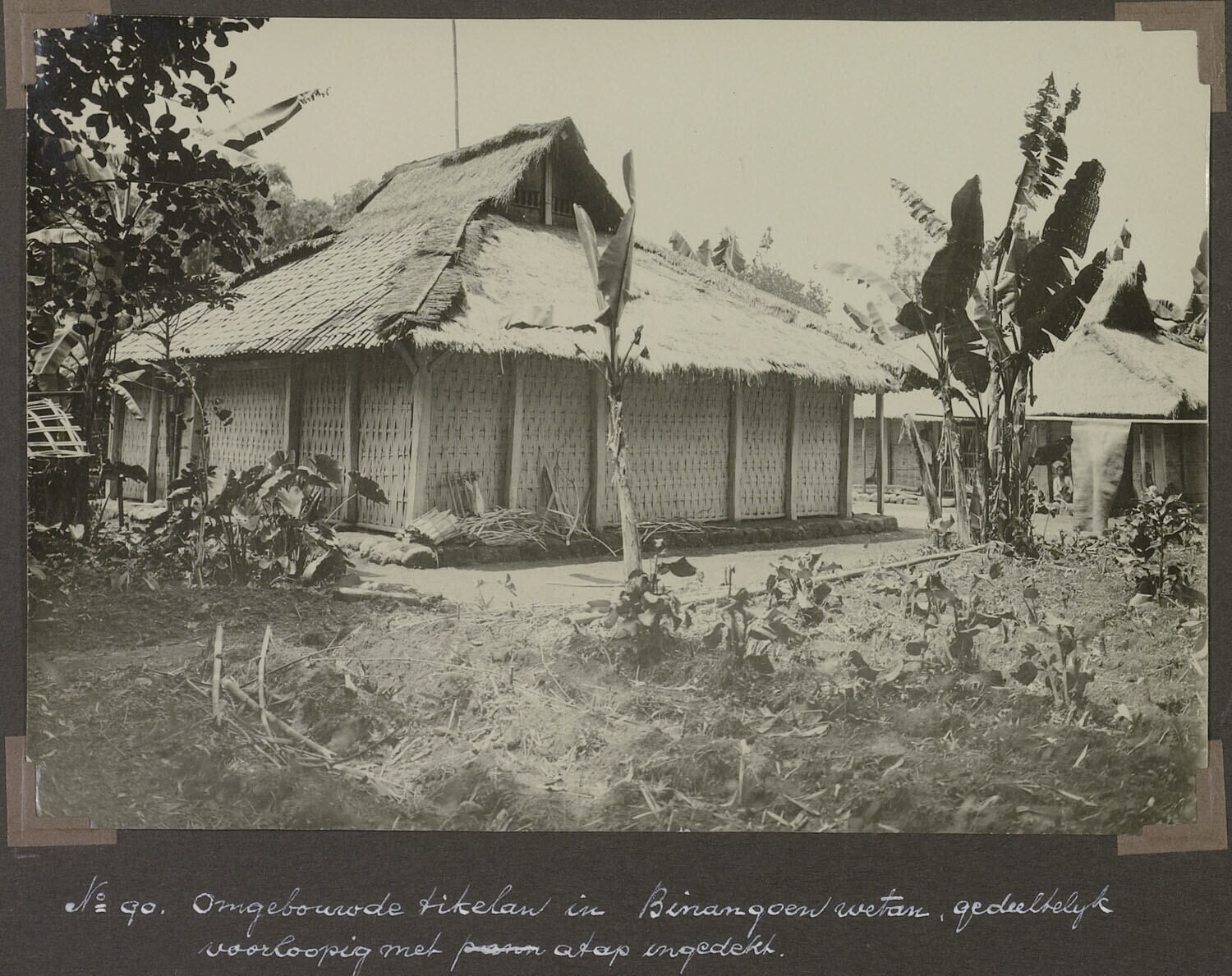 'Omgebouwde tikelan in Binangoen wetan, gedeeltelijk voorloopig met atap ingedekt.'