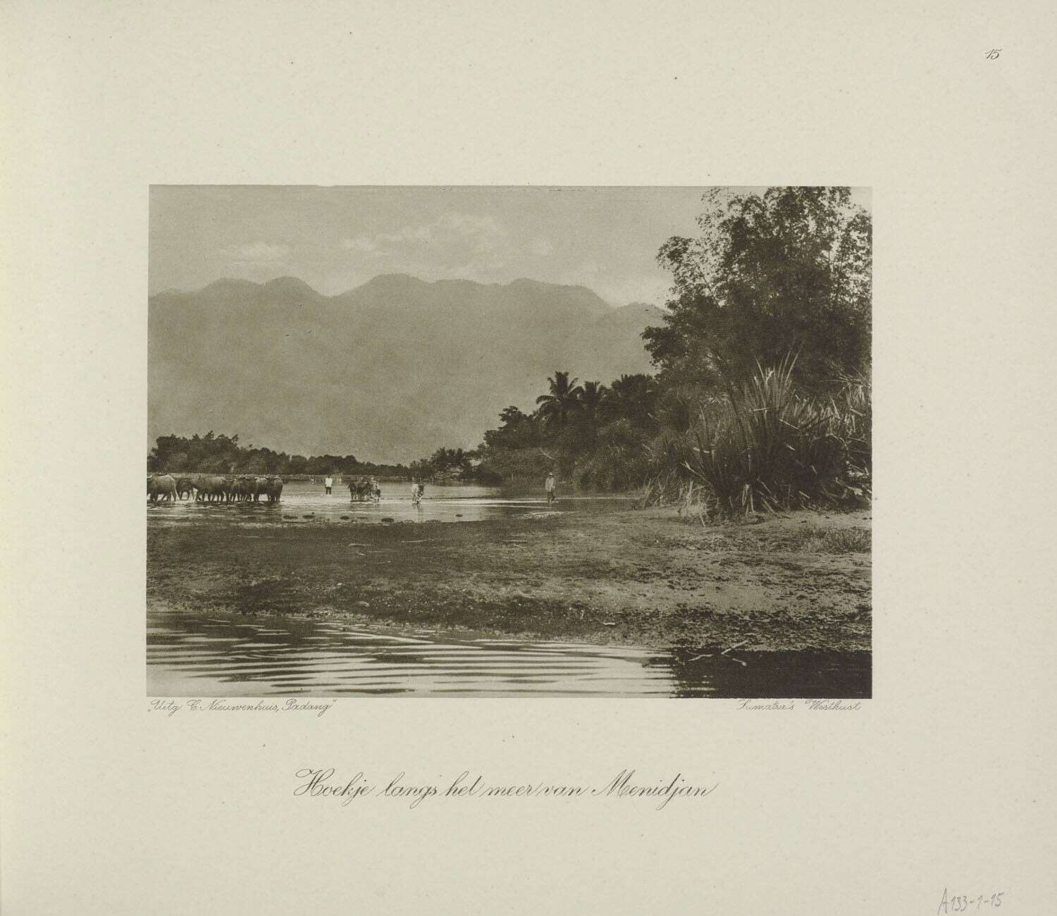 Gebied met runderen en begeleiders langs het meer van Menidjan aan Sumatra's Westkust