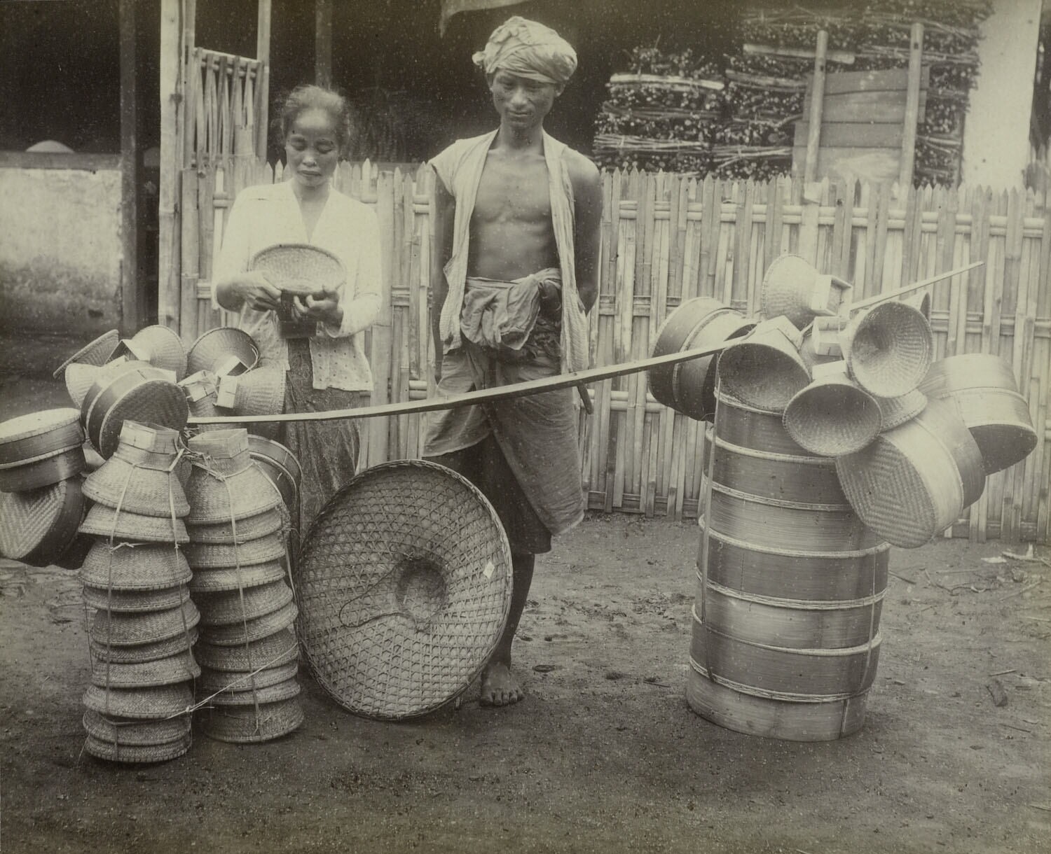 Een venter van bamboeartikelen