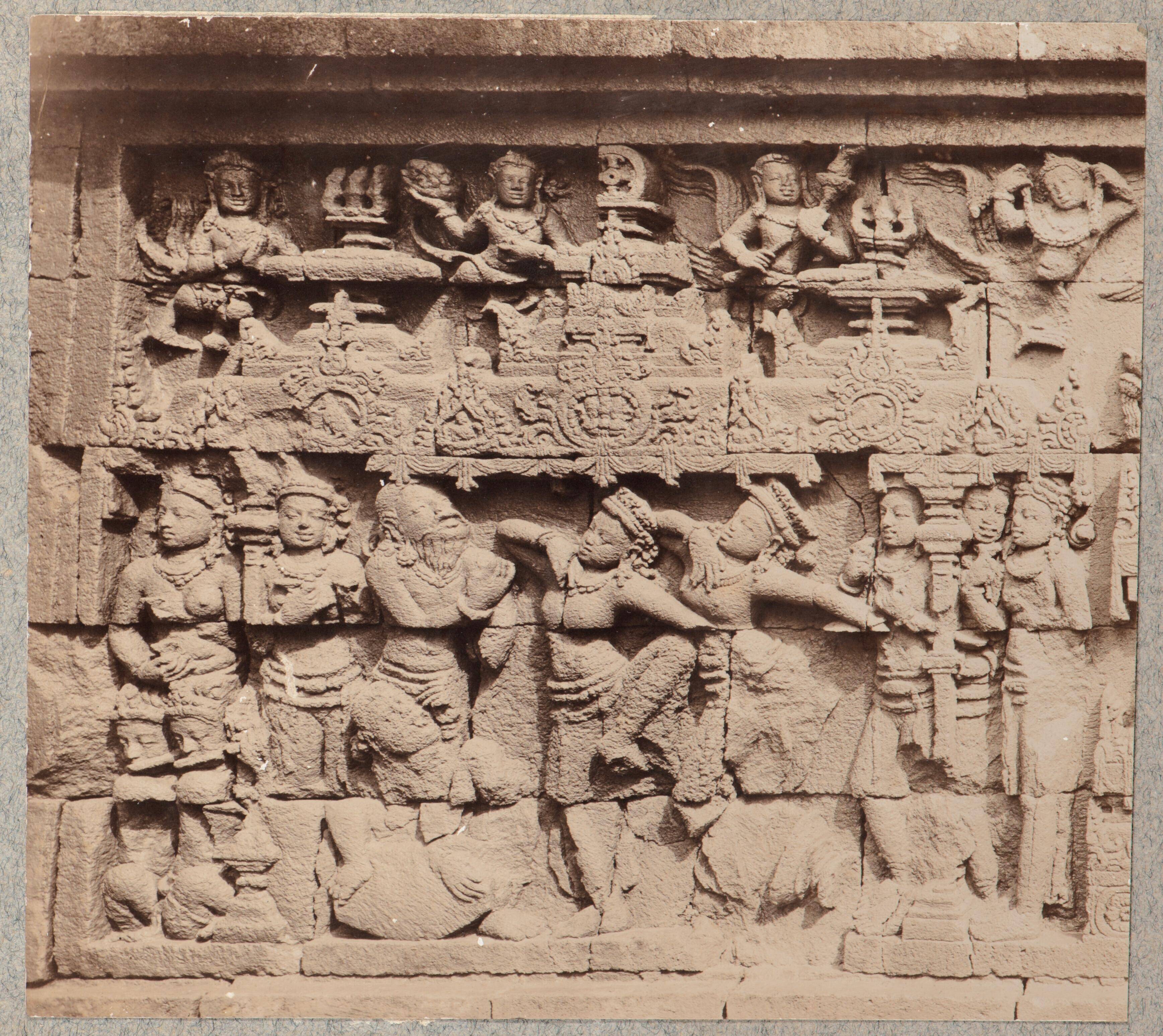 Relief van de Borobudur waarop dansende figuren uitgebeeld zijn