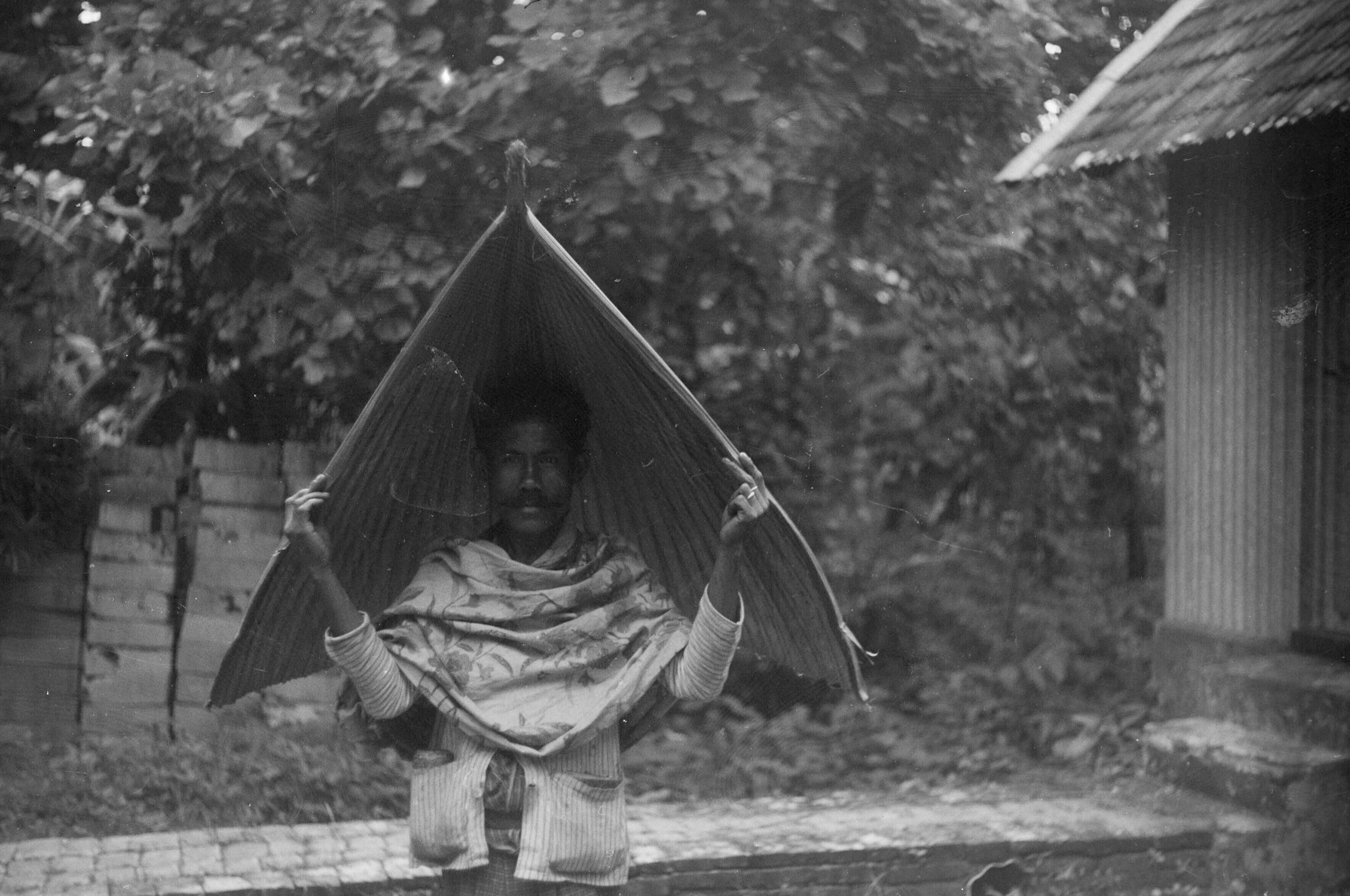 Man met regenscherm