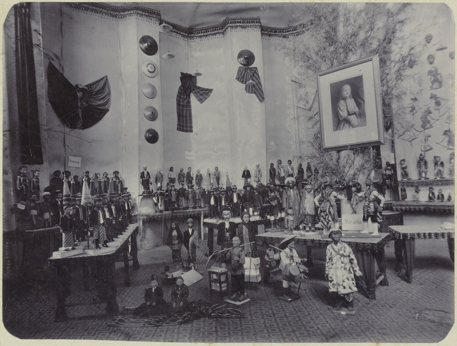 Poppen in Indonesische kleding in de tentoonstelling van 1893