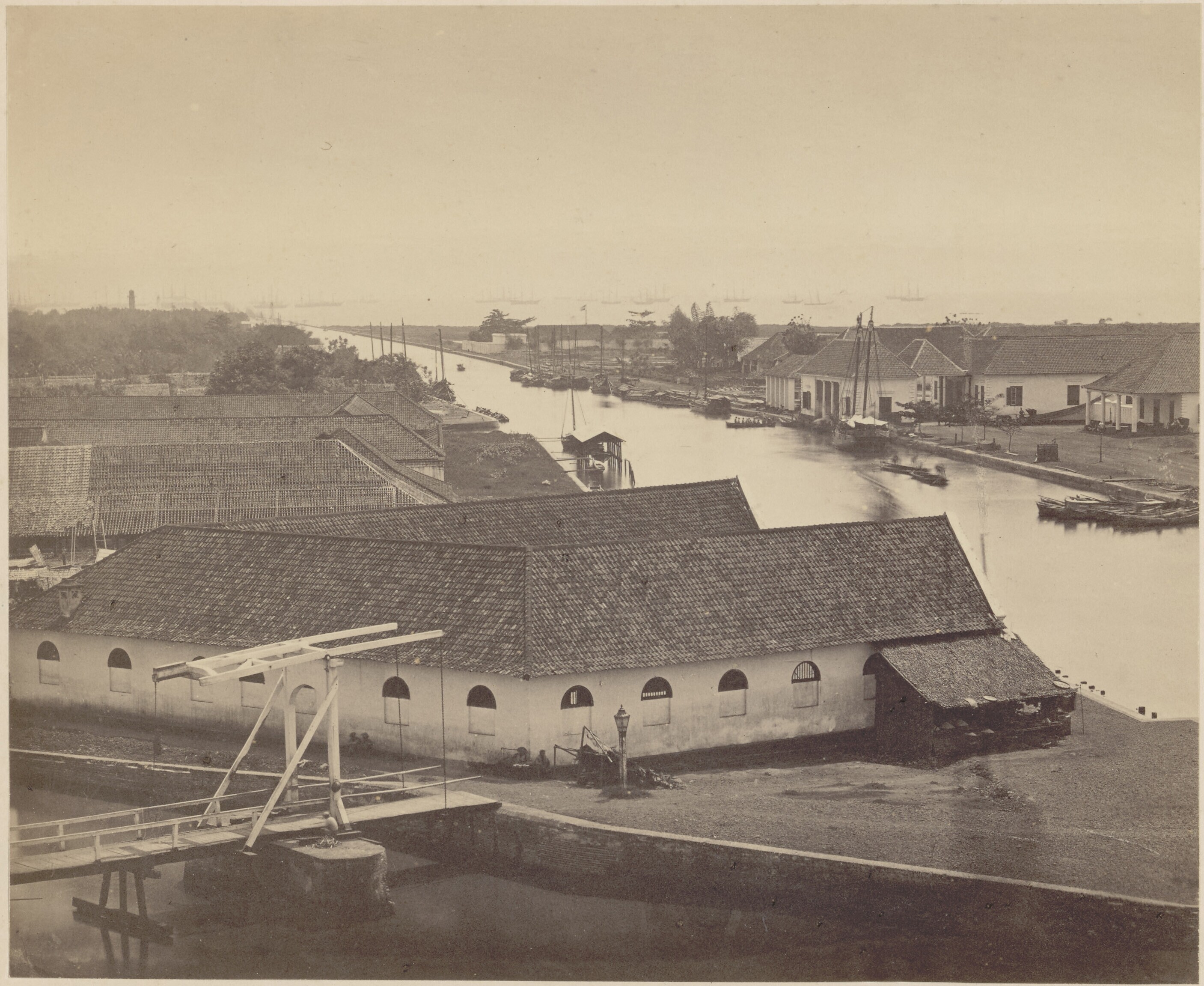 Kanaal met aangemeerde boten en bebouwing aan weerszijden