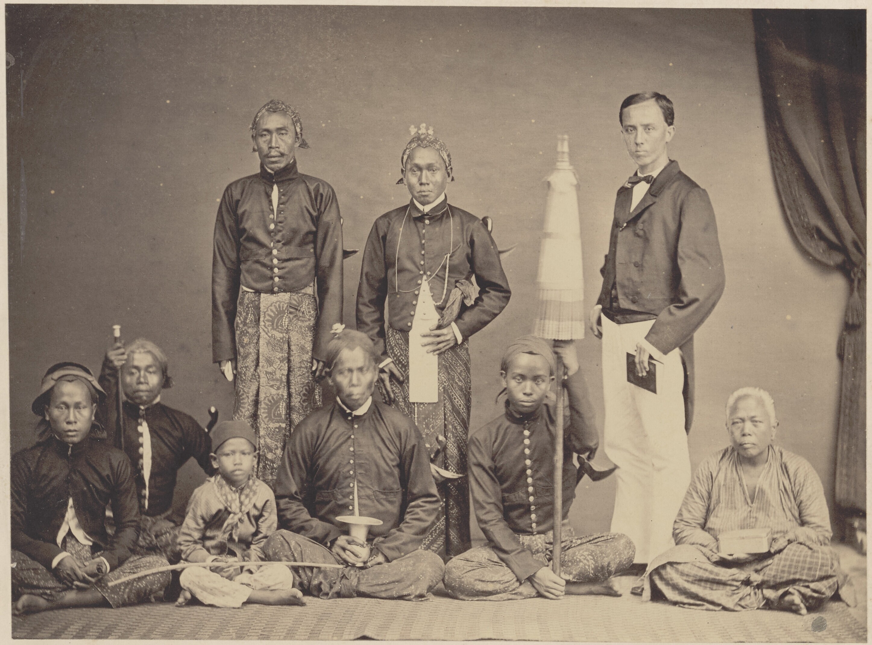 Groepsfoto van een Javaanse regent met zijn gevolg
