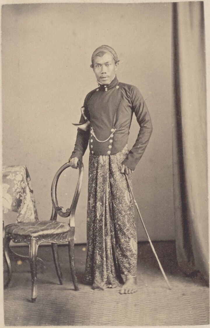 Javaanse bestuursambtenaar staand naast stoel