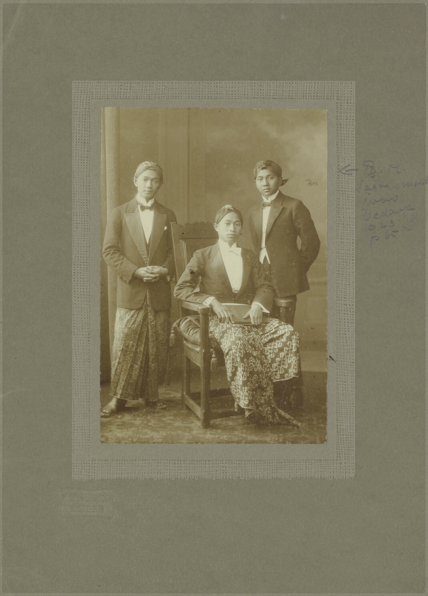 Groepsportret van adellijke Javanen, studenten van prof. G.A.J. Hazeu