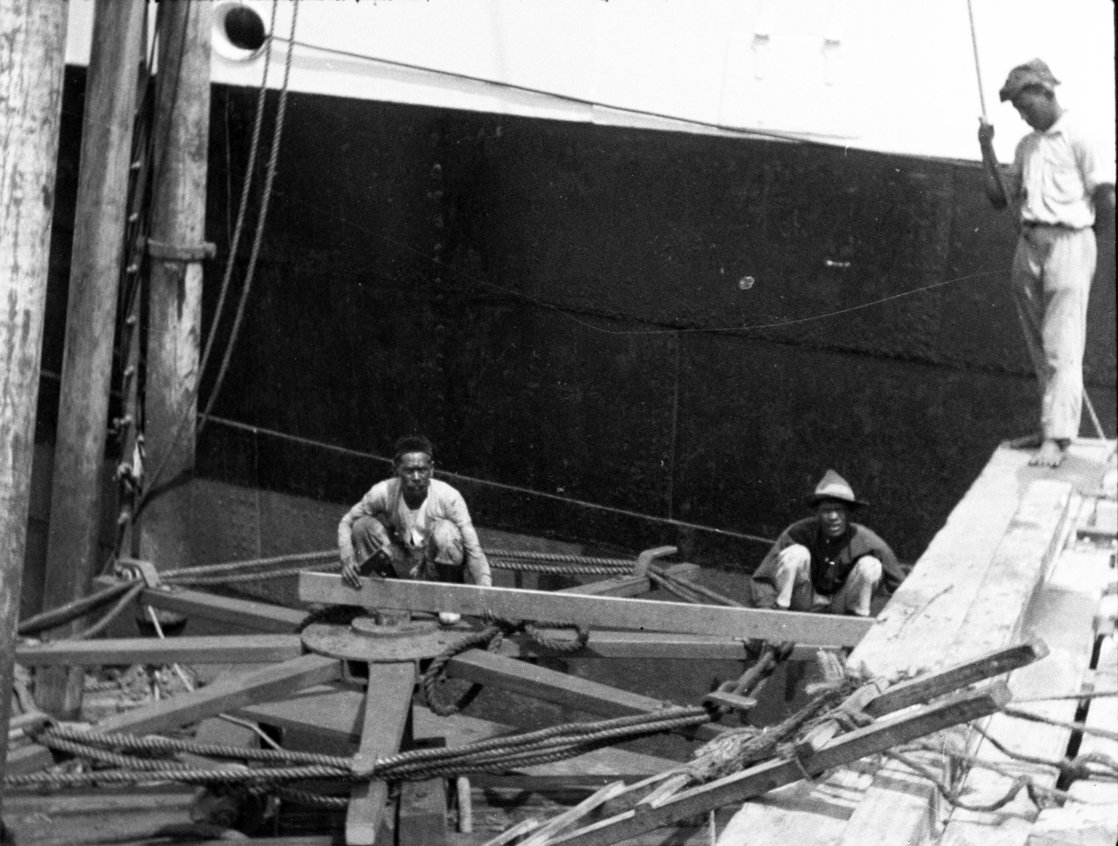 Inheemse arbeiders aan het werk op de olieraffinaderij van de B.P.M. in Balikpapan